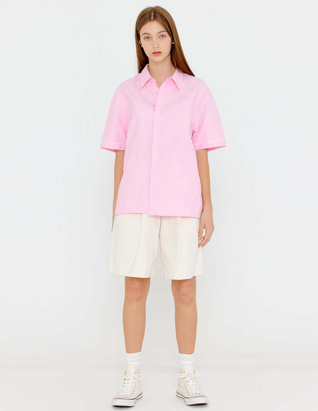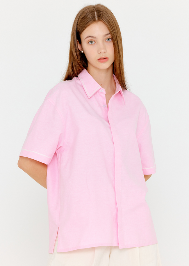제너럴아이디어 핑크 스티치 반팔 셔츠