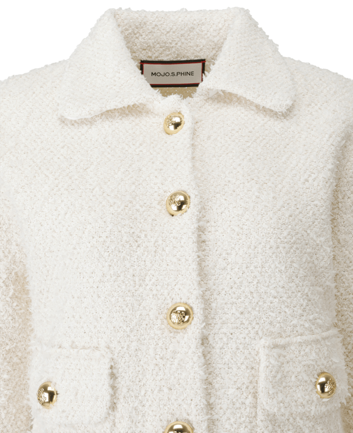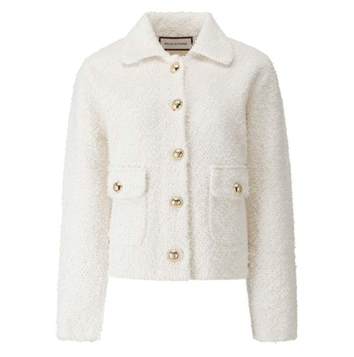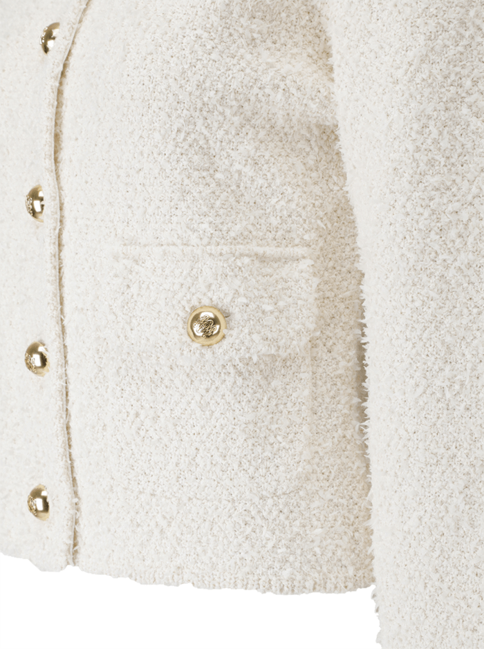 버튼 장식 포인트 아이보리 컬러 날개사 자켓