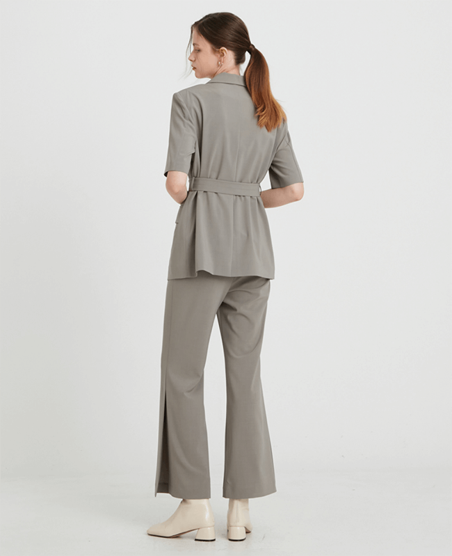 플라스틱아일랜드 오버핏 벨티드 반팔 자켓