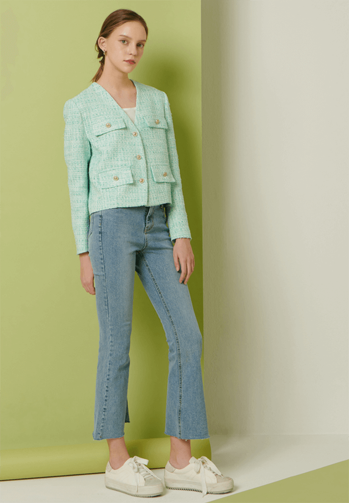 샤틴 브이넥 트위드 자켓 (이재니 패션)
