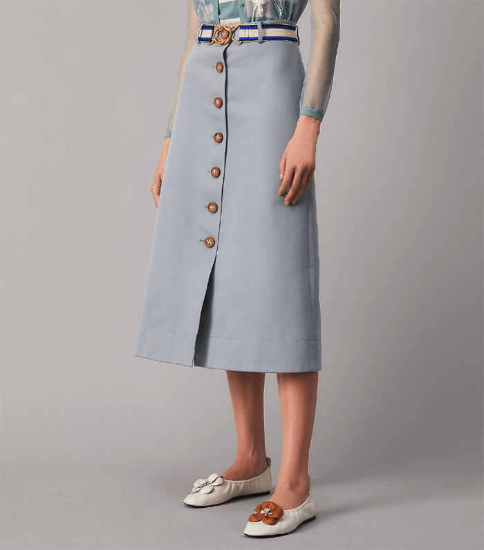 토리버치 버튼프론트 미디 스커트 블루 (신하리 패션)