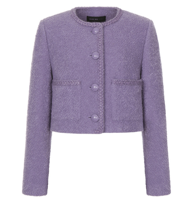올리브데올리브 퍼플 부클 크롭 자켓 (은서연 패션)