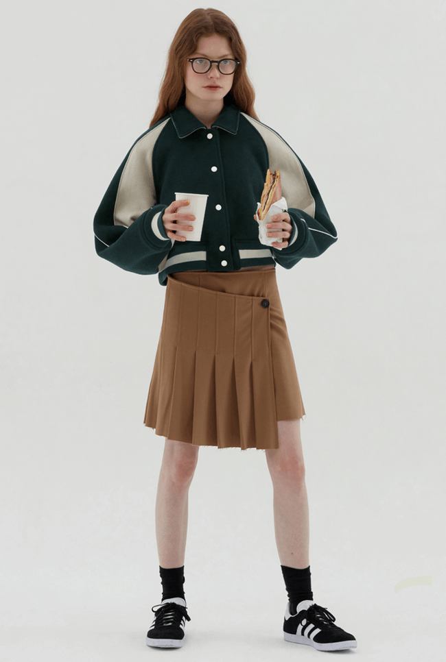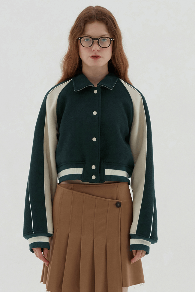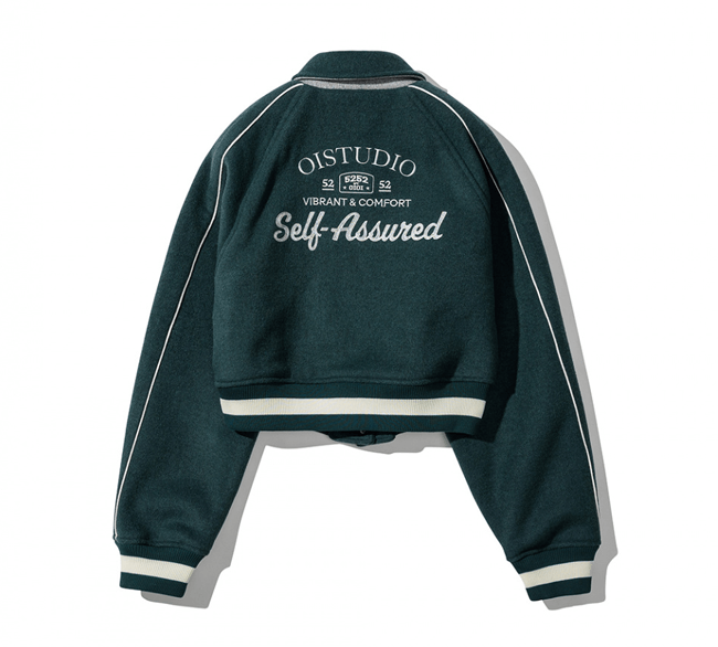 5252 바이 오아이오아이 그린 크롭 바시티 자켓 (구여름 패션)