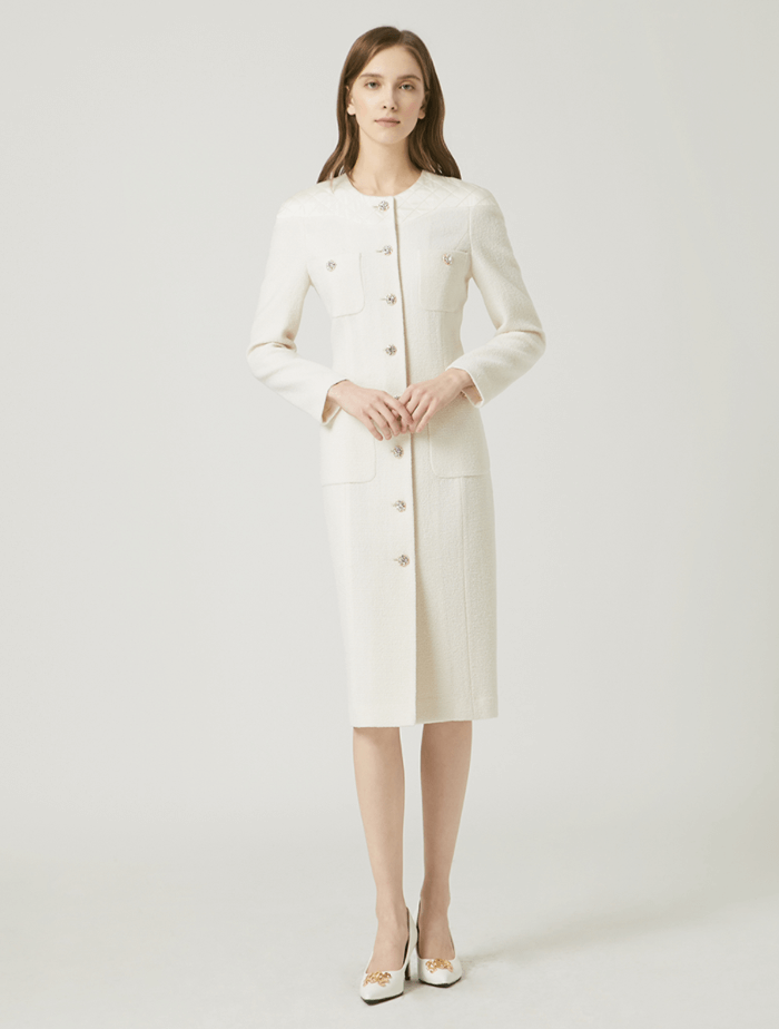 모조에스핀 어깨 퀼팅 포인트 H라인 원피스 (강윤아 패션)