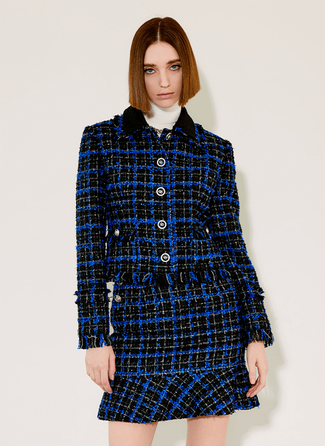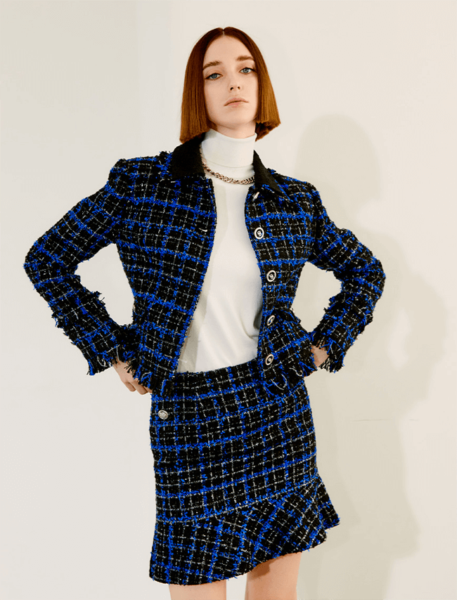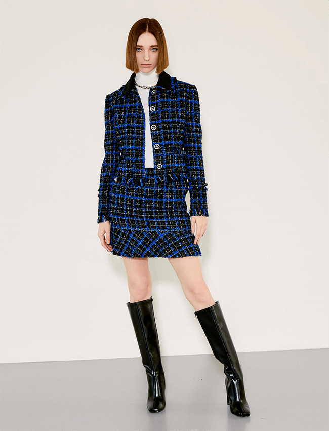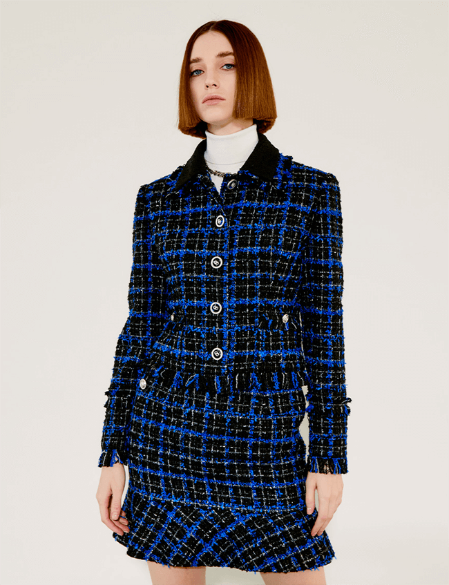 채뉴욕 블루 체크 트위드자켓&스커트 셋업 (강바다 패션)