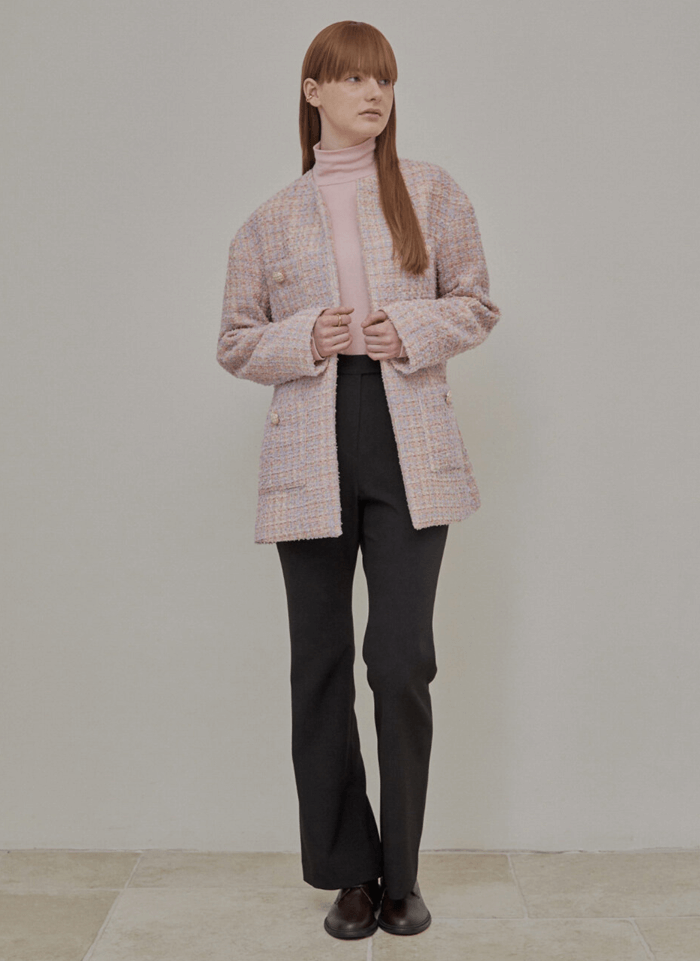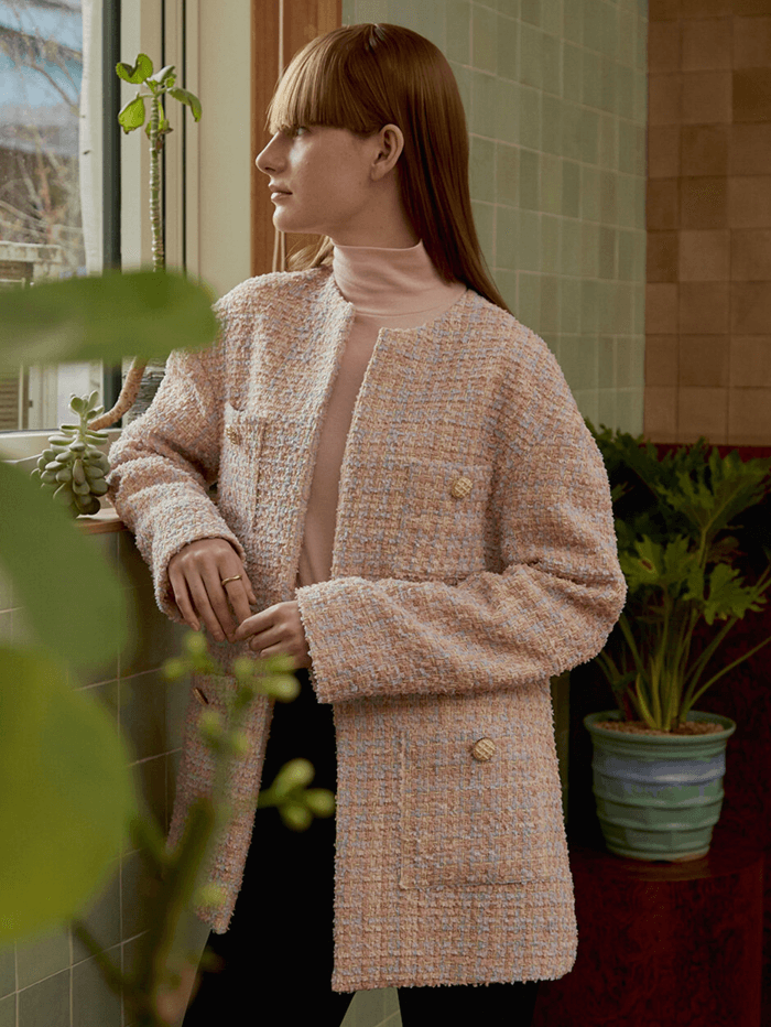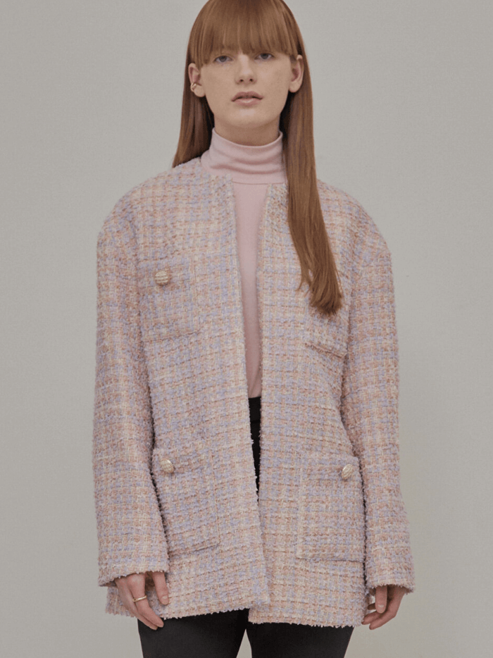 코르카 핑크 오버사이즈 트위드자켓 (맹옥희 패션)