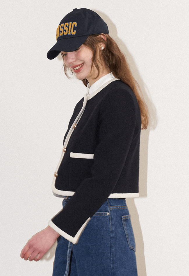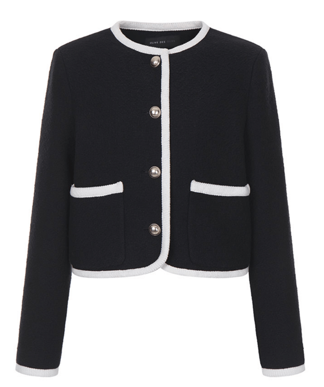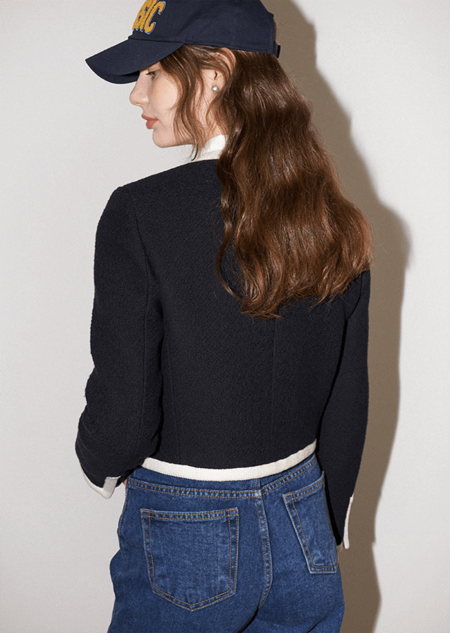 올리브데올리브 배색 트위드 크랍 자켓 (김해미 패션)