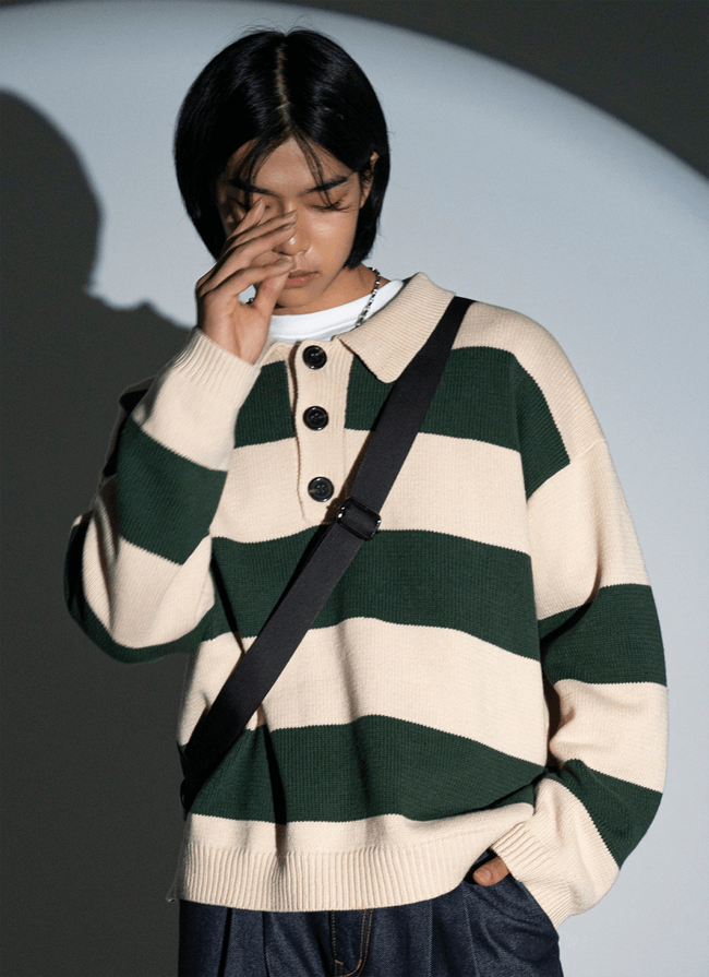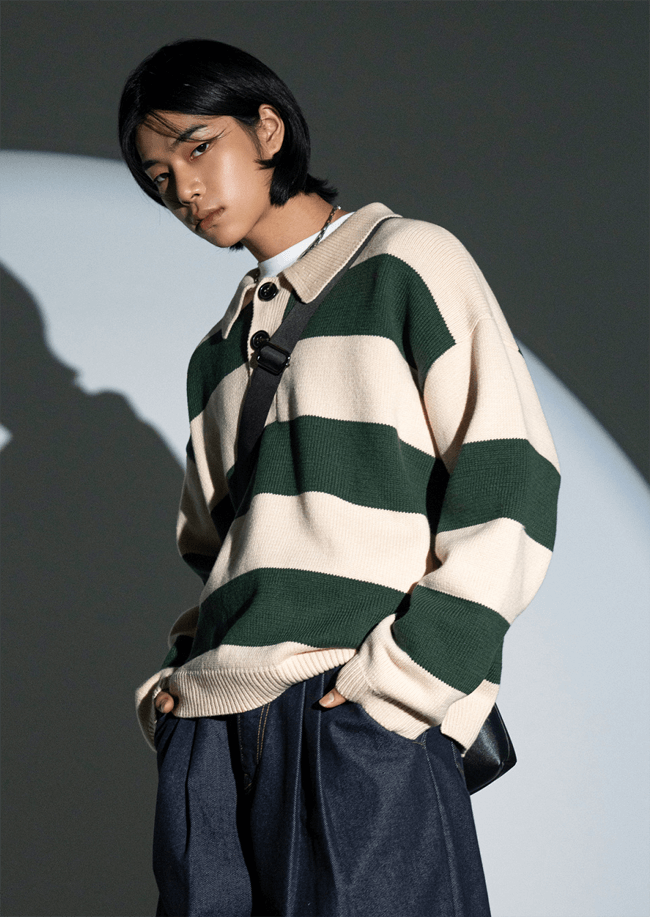 어반드레스 그린 럭비 스트라이프 니트 (은지원 패션)