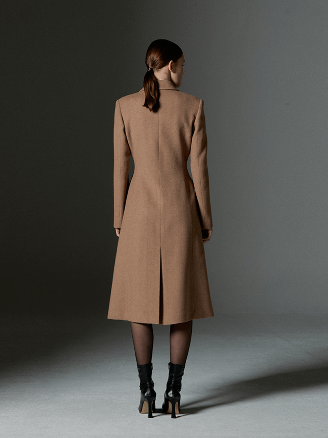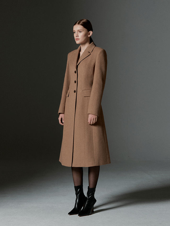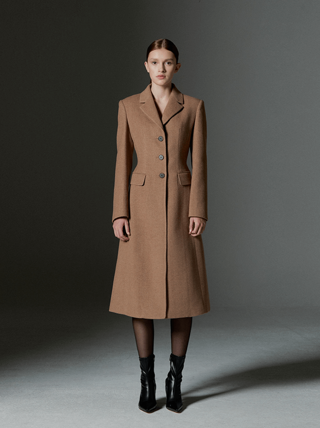 싱글 브레스트 슬림핏 롱 코트 - 베이지