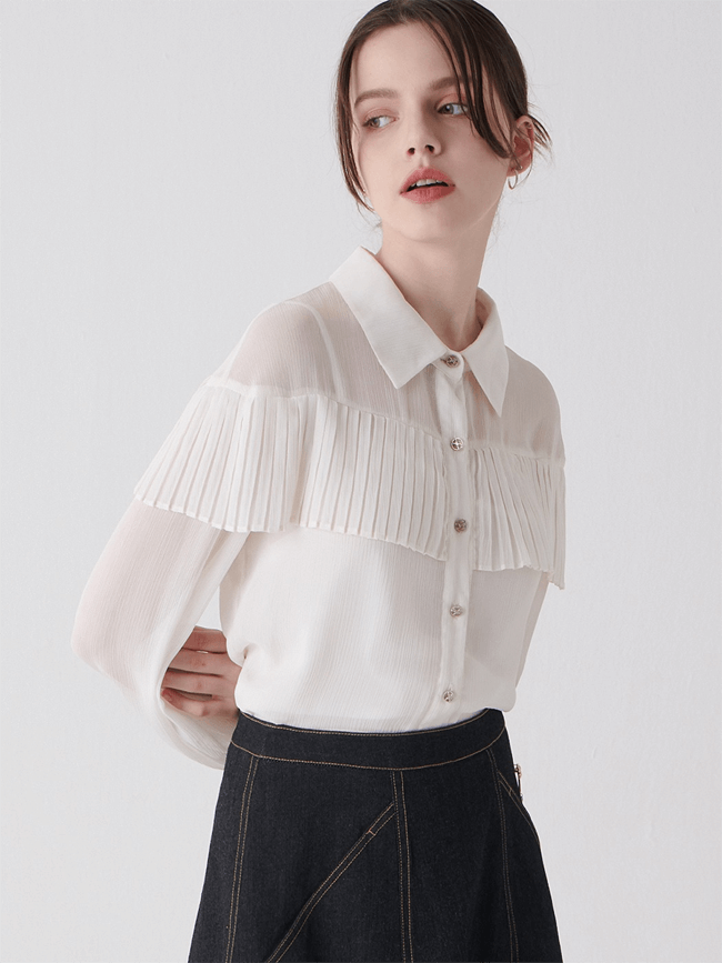 시스루 플리츠 블라우스