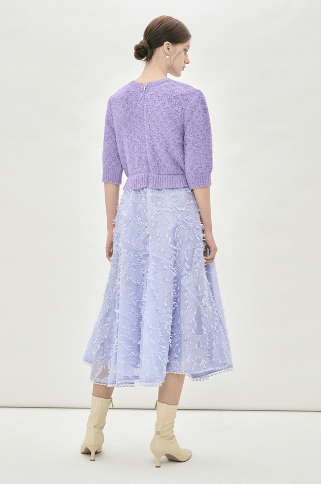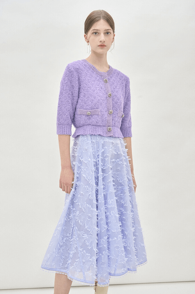 진짜가 나타났다 (50회/마지막회) 윤주희 원피스 _ 2023년 9월 10일 일요일 저녁에 전파를 탔었던 KBS 2TV 주말드라마 "진짜가 나타났다!" 50화/마지막화 중에서, 염수정역을 연기한 배우 윤주희님이 입고 나왔었던 옷으로, 크리스탈 버튼 장식의 퍼플 컬러의 가디건과 플라워 모티브의 시어한 텍스쳐와 프린지 텍스쳐가 어우러진 스커트를 같이 입은 듯한 디자인의 원피스에 대해서 알아왔습니다.