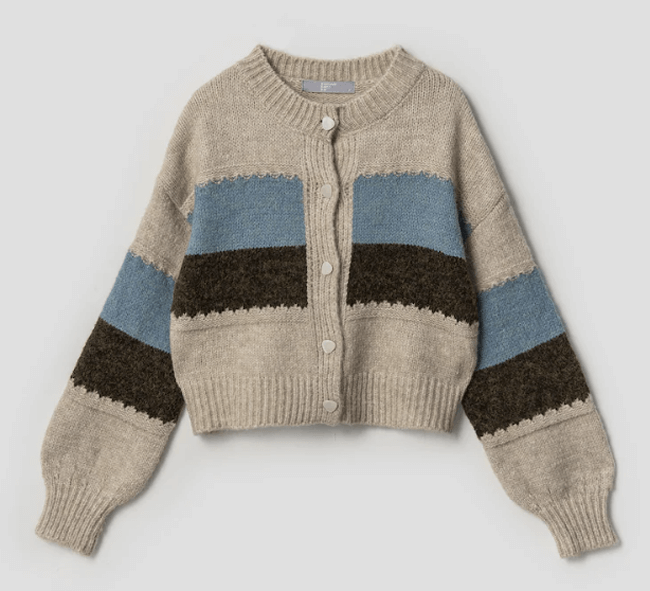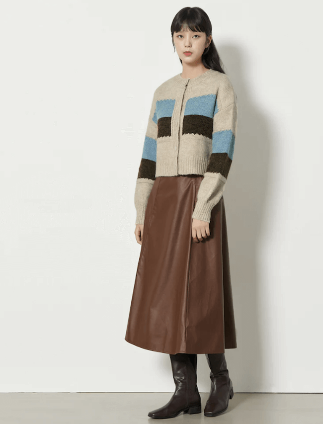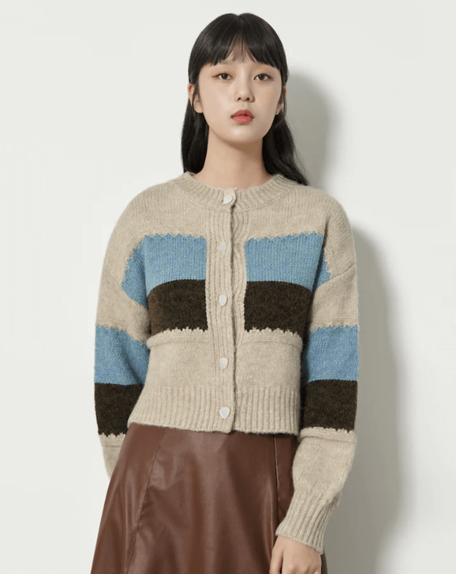 에잇세컨즈 컬러 블록 라운드넥 가디건 (봉예분 패션)