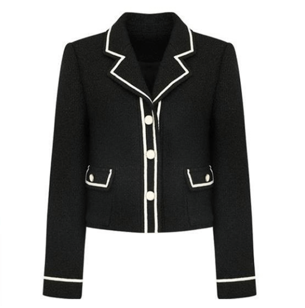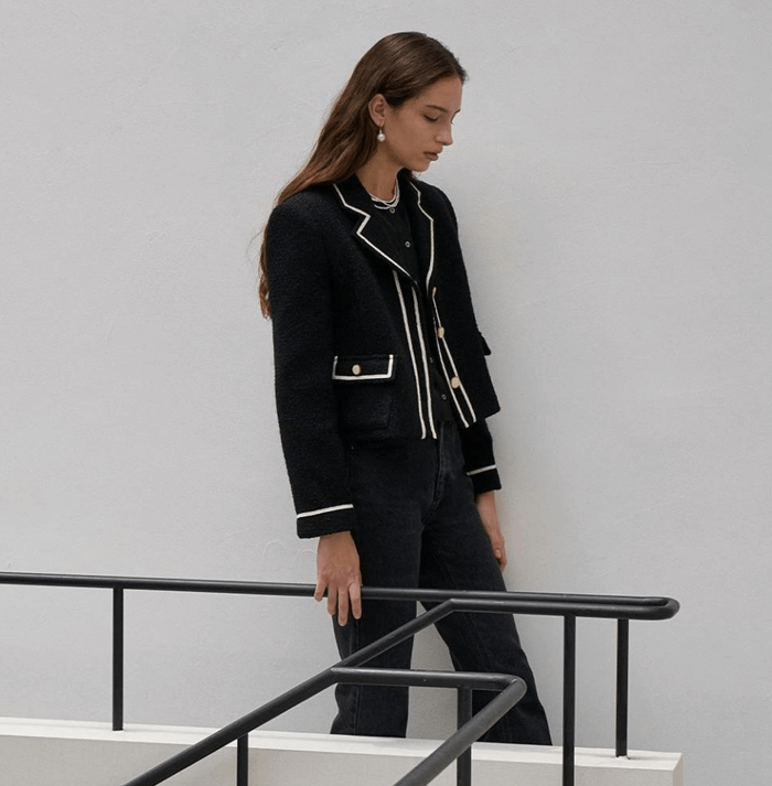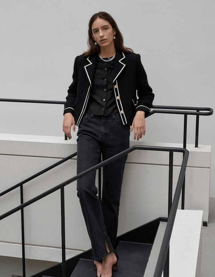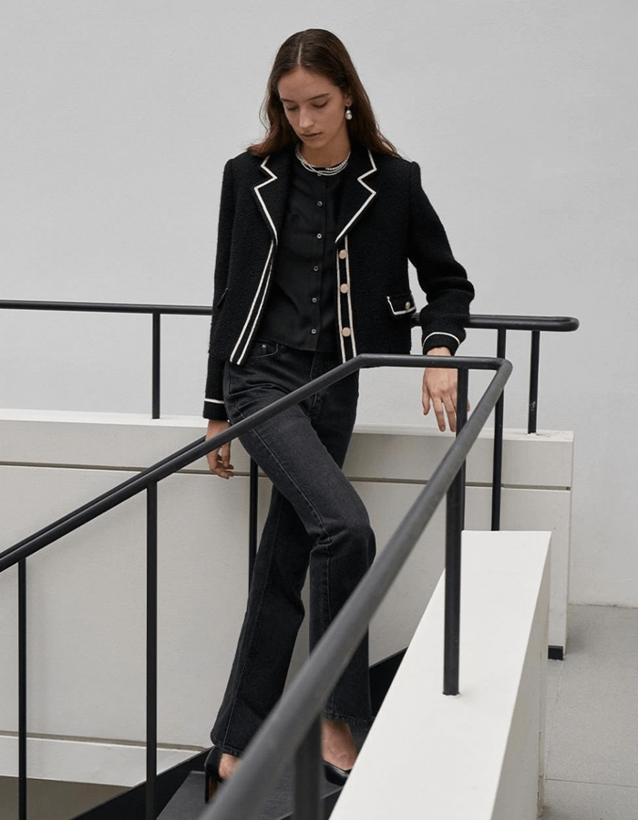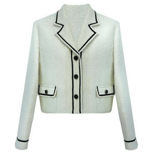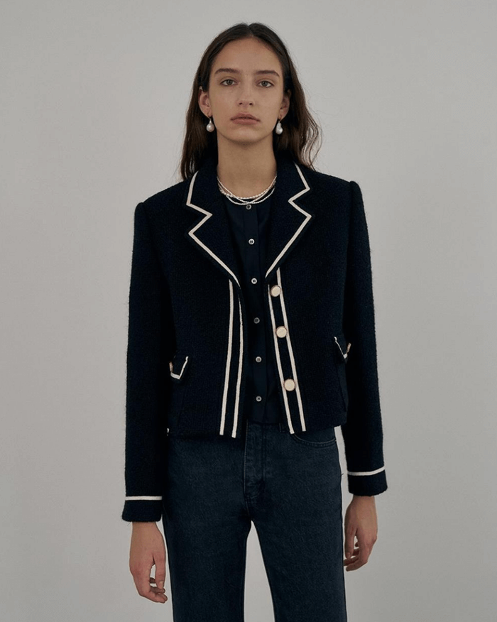 르네제이 아이보리 배색 라인 트위드자켓 (심해준 패션)