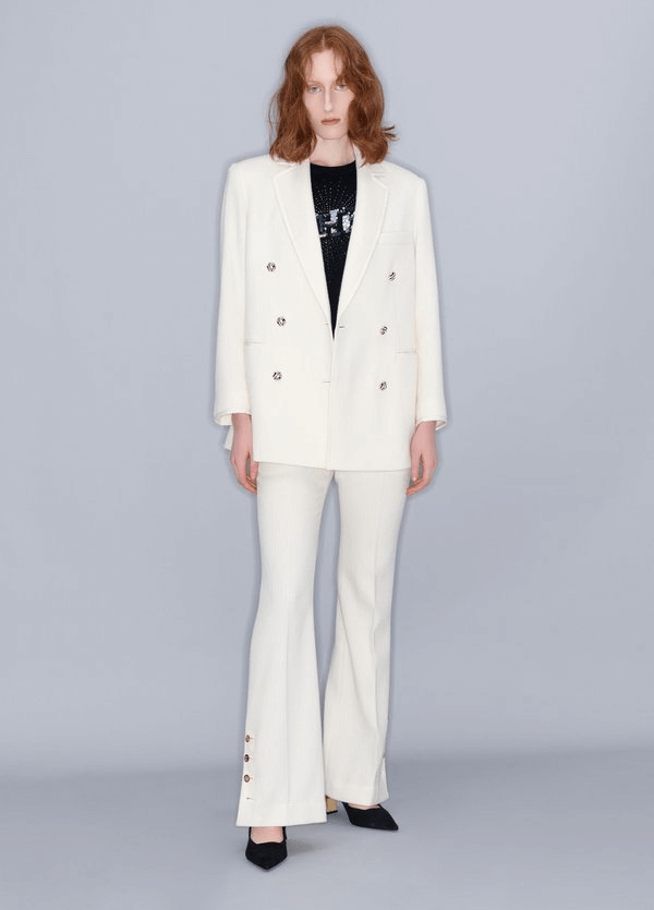 2025년 1월 3일 금요일 밤에 전파를 탔었던 SBS 금토드라마 나의 완벽한 비서 1화 중에서, 여자 주인공 강지윤역을 연기한 배우 한지민님이 수트 셋업으로 입고 나왔었던 옷으로, 로고 심볼 버튼이 포인트인 더블 브레스트 자켓과 사이드 버튼 디테일이 포인트인 부츠컷 울팬츠에 대해서 알아왔습니다.