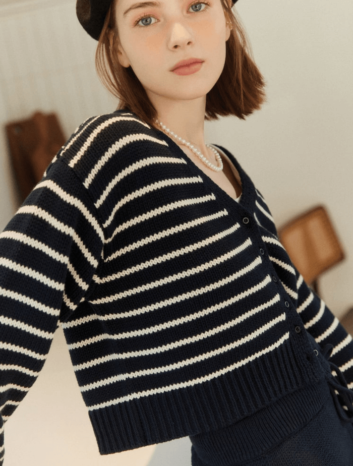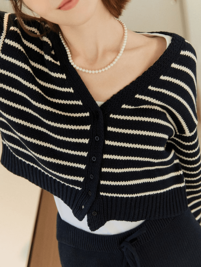 Stripe Knit Cardigan Night Sky
