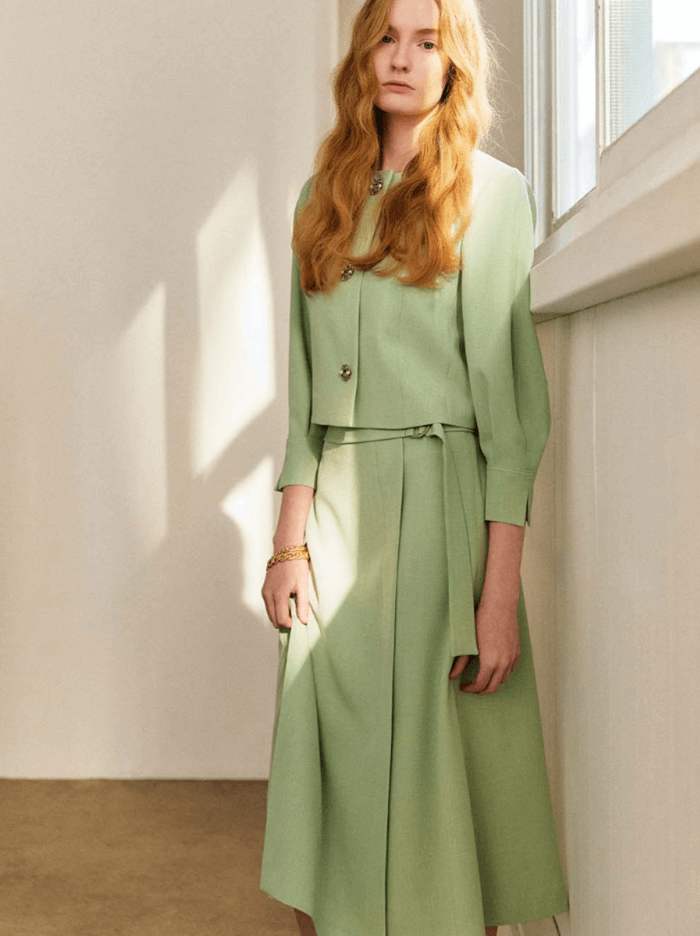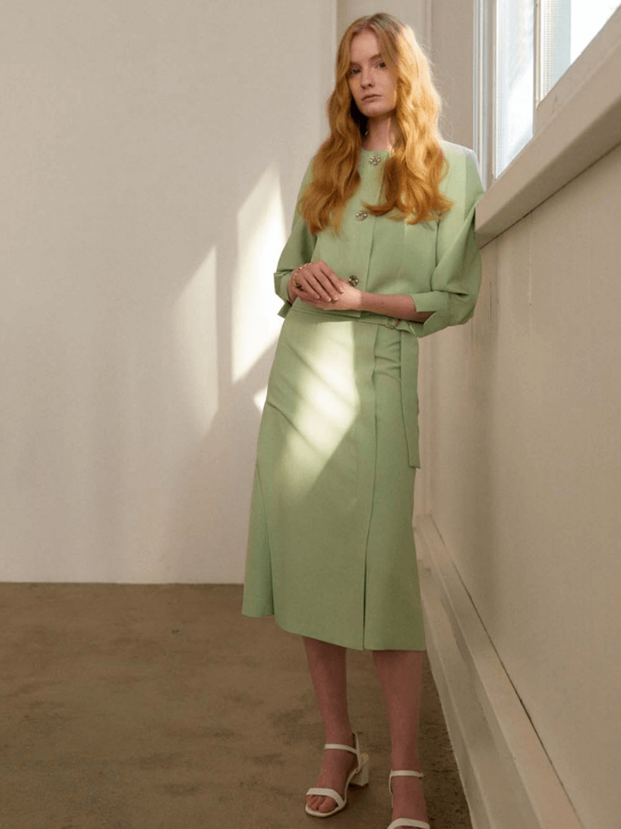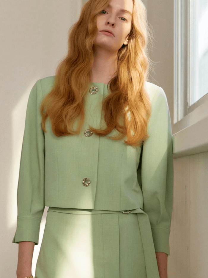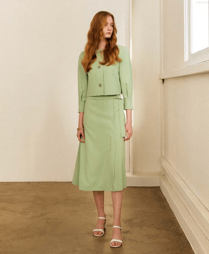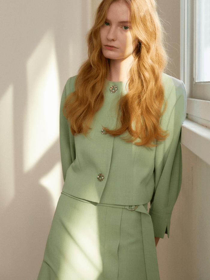 발렌시아 민트 숏자켓&벨티드 스커트 (심해준 옷)