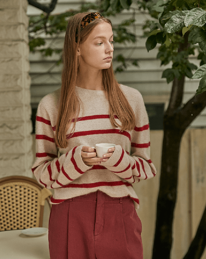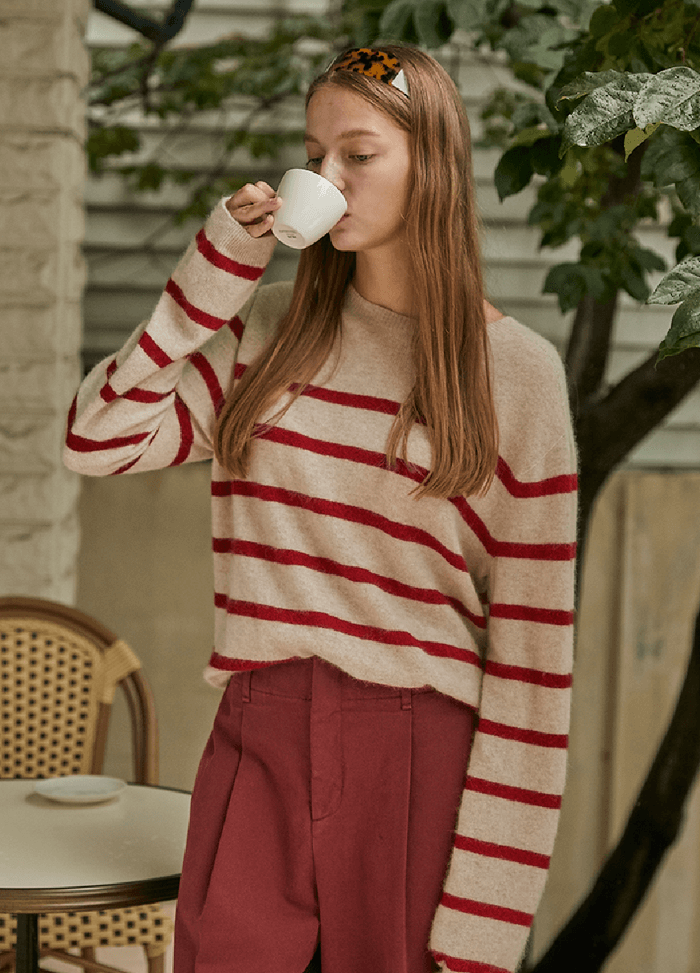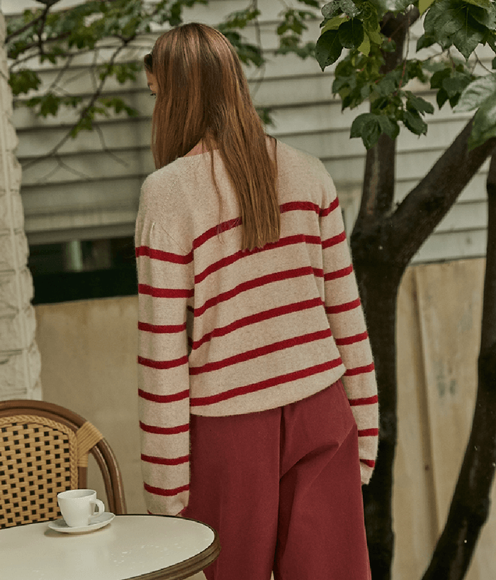 보카바카 레드 스트라이프 니트 (민선아 패션)