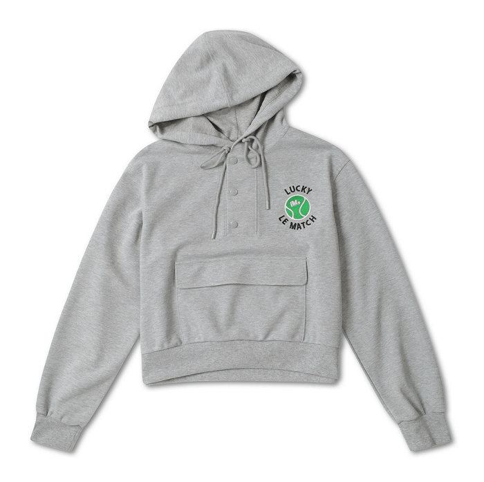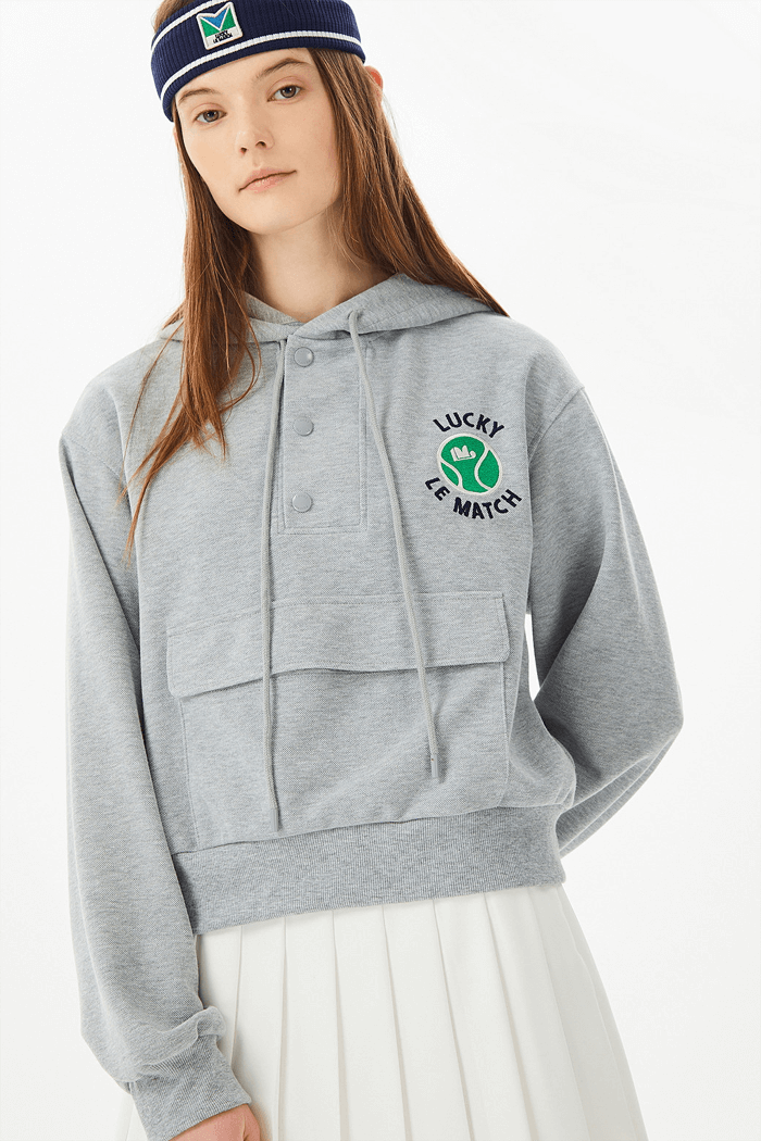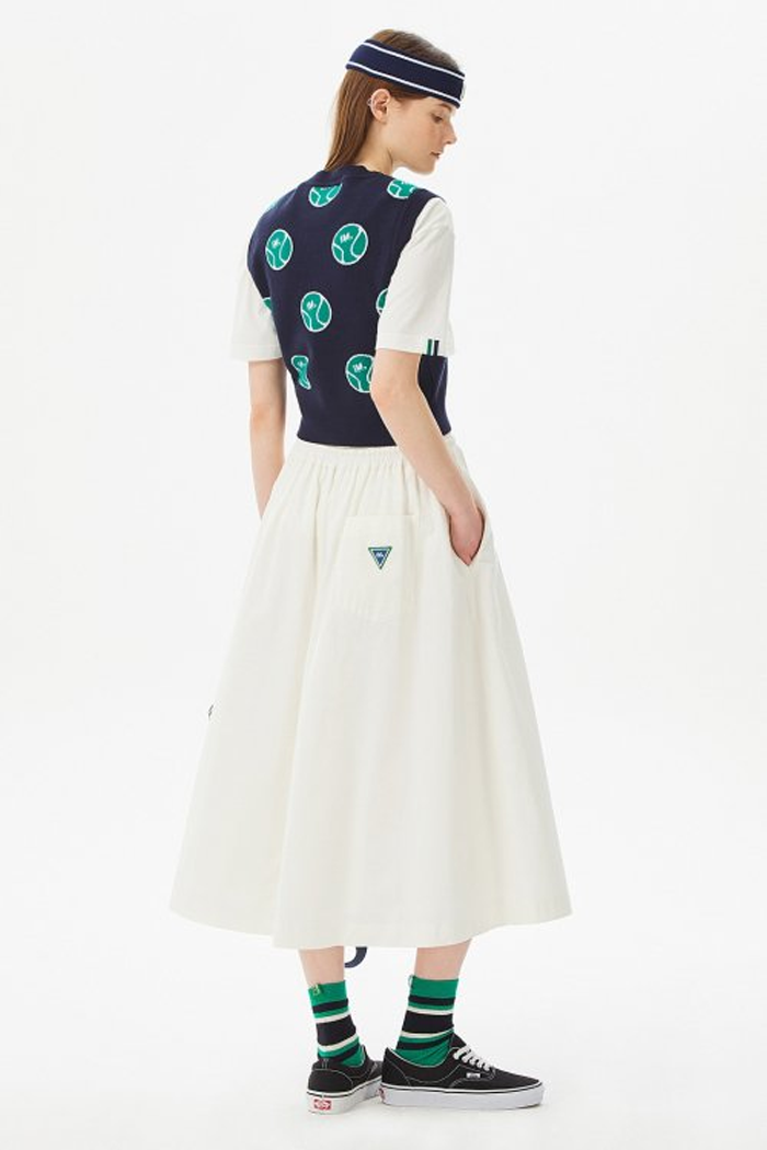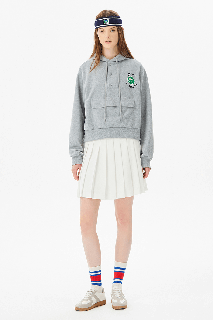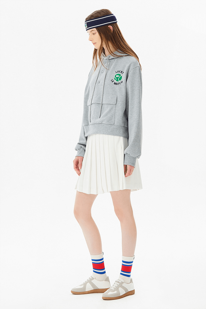 럭키마르쉐 포켓 저지 후드티&화이트 플레어 스커트