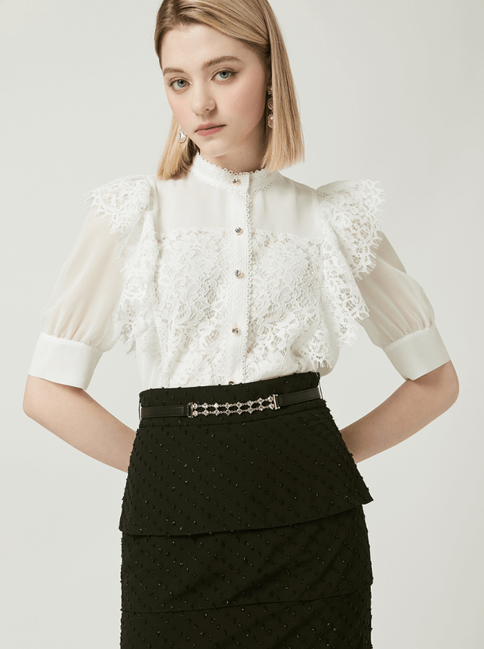 레이스 러플 블라우스