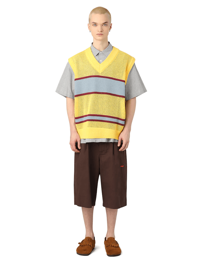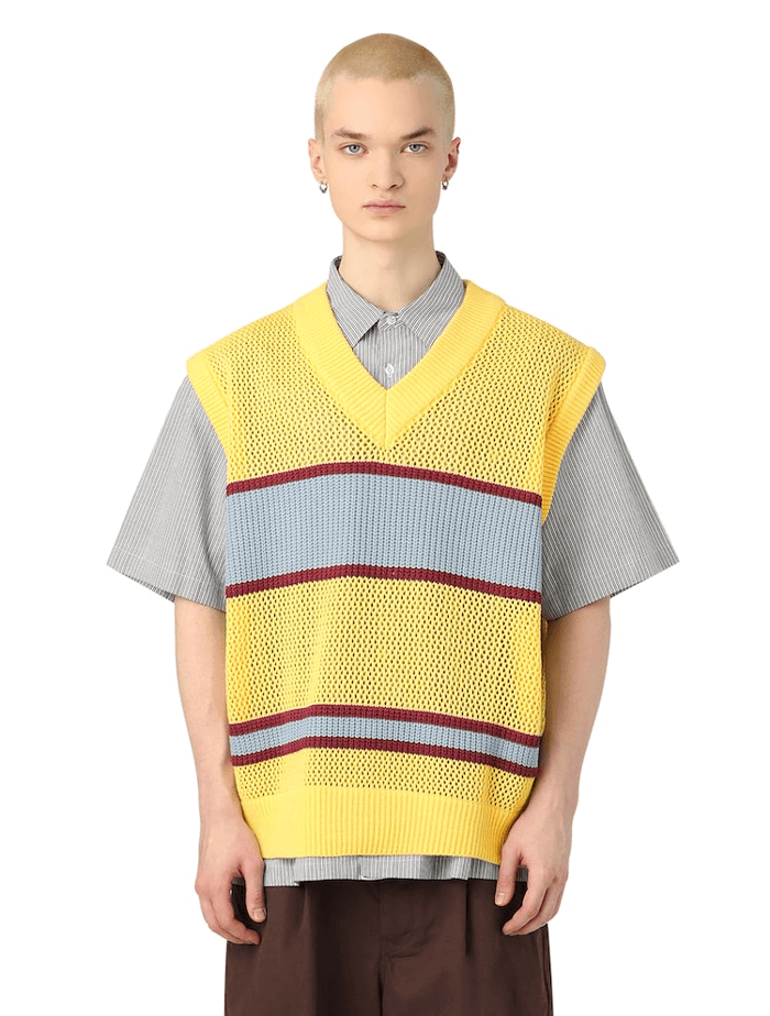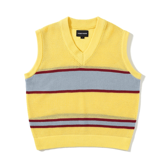 예스아이씨 옐로우 스트라이프 니트 베스트