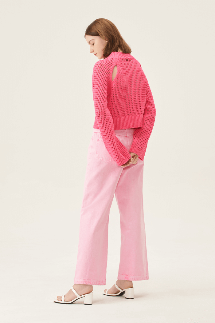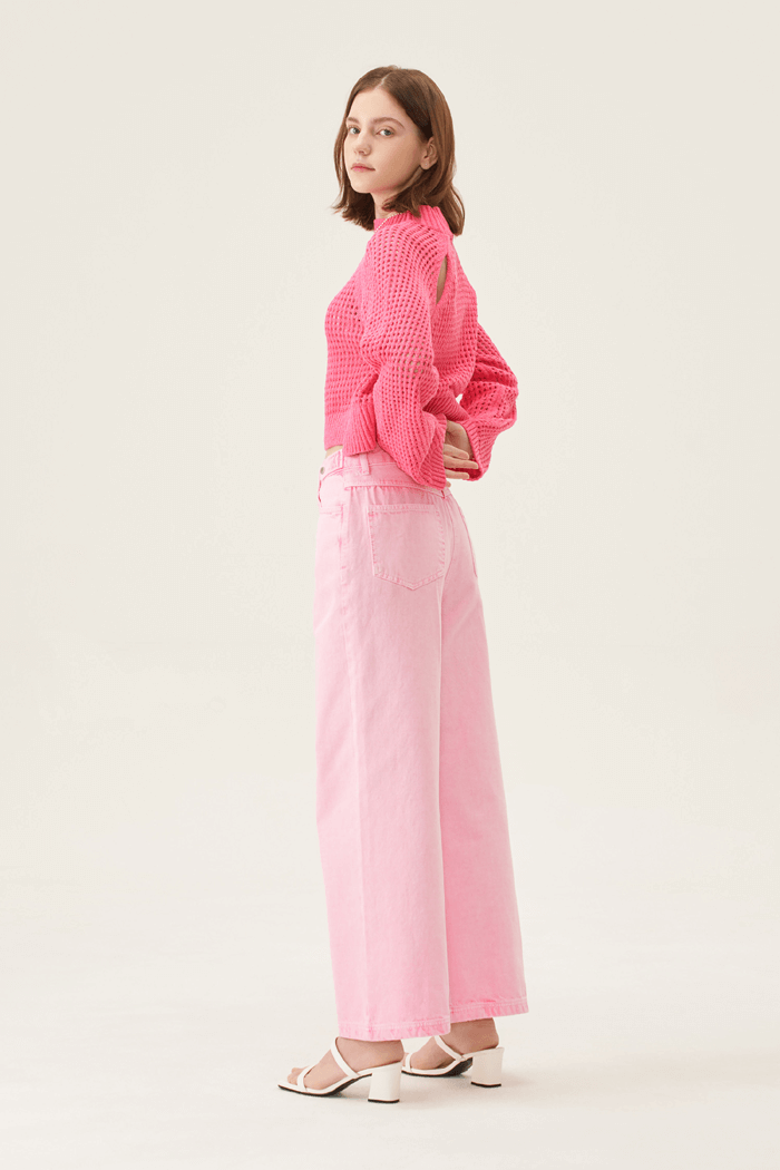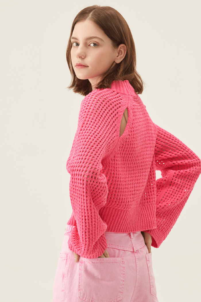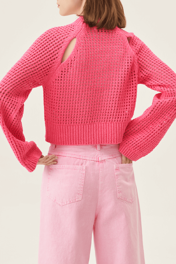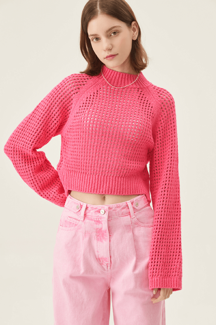 크롭 기장의 핑크 니트 스웨터