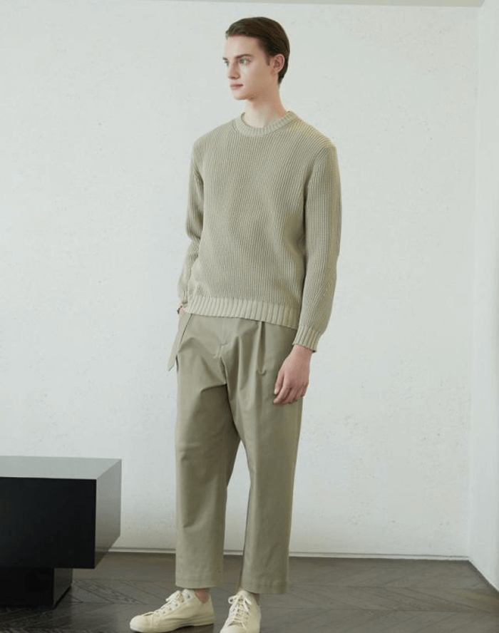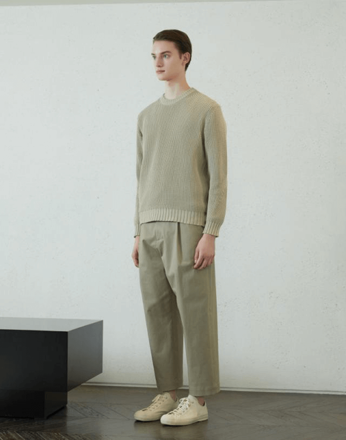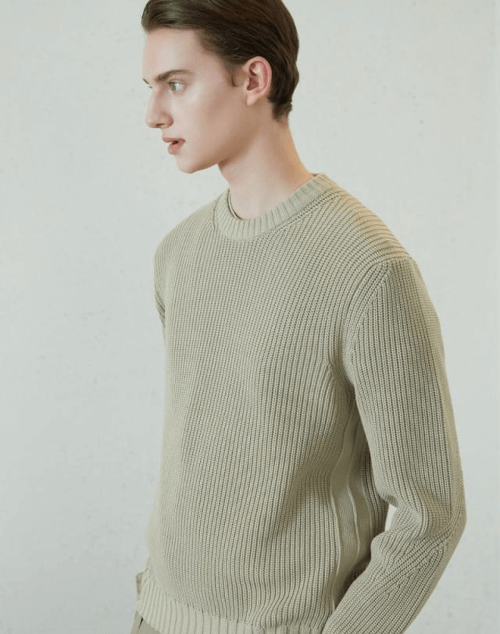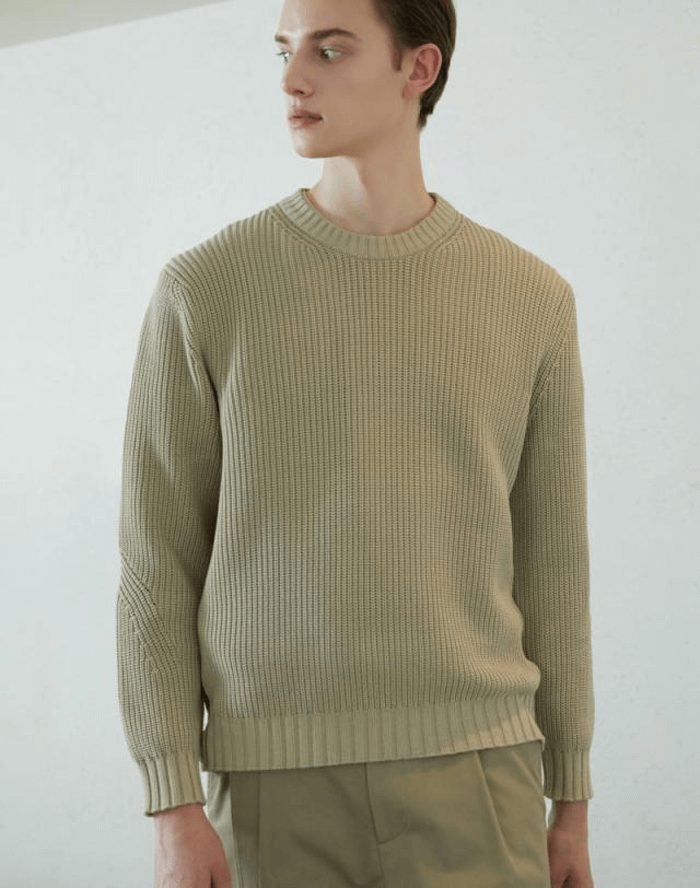 베이지 <ModCotton> 텍스쳐드 라운드 니트