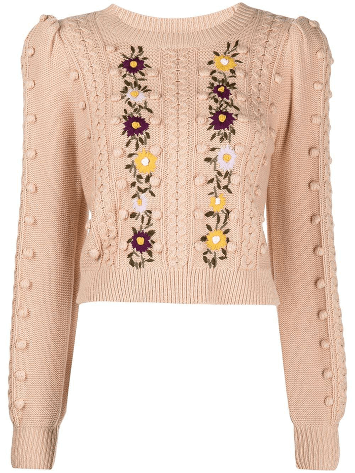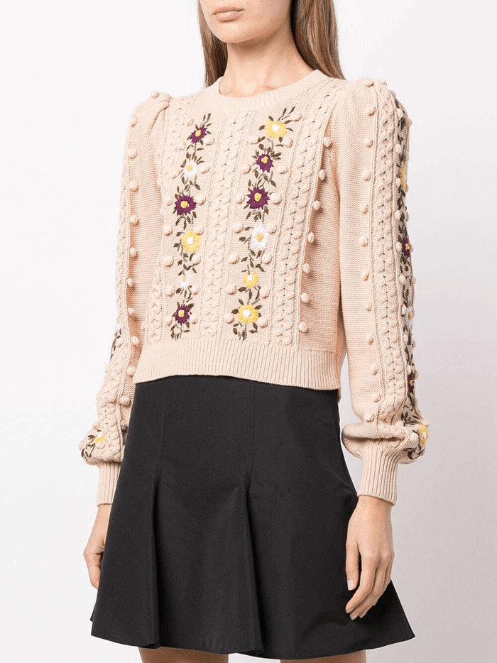 앨리스앤올리비아 플라워 자수 니트 스웨터 (오한별 패션)