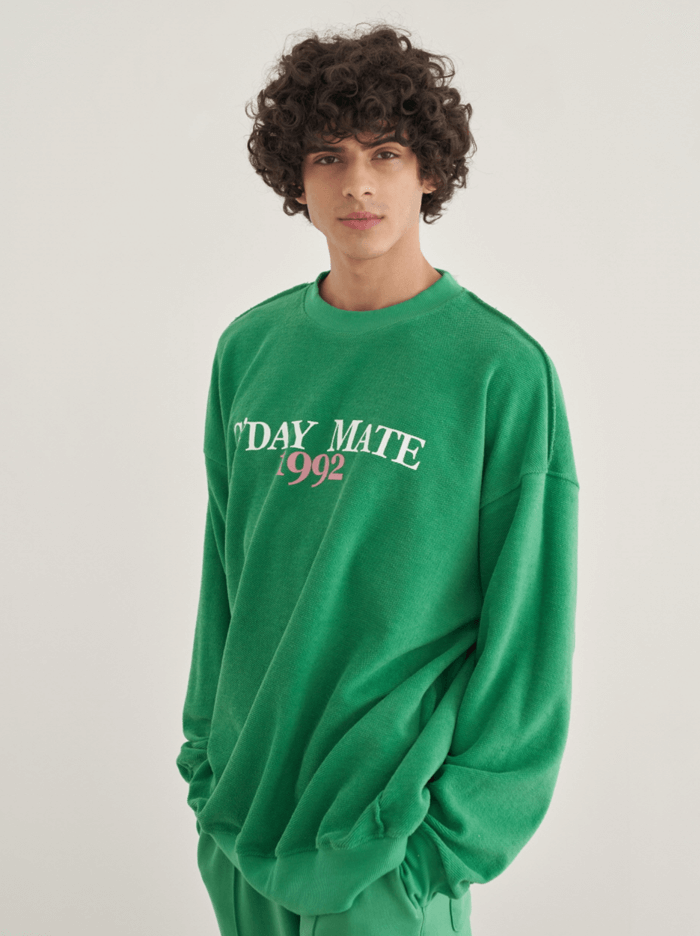굿데이메이트 그린 리버서블 맨투맨 (이윤재 패션)