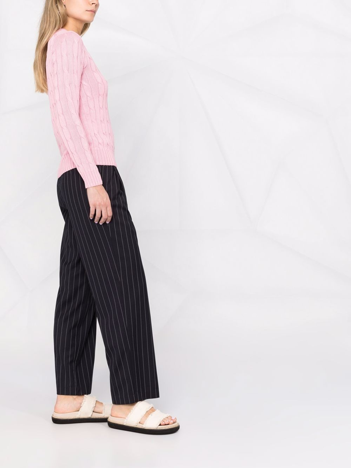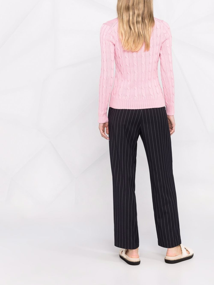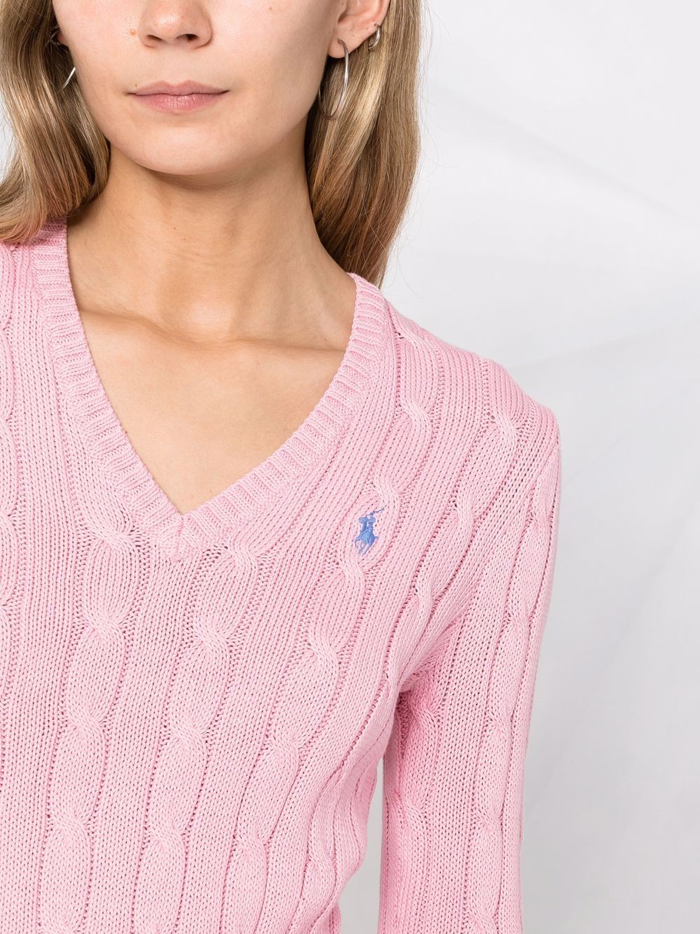 케이블 니트 V넥 스웨터-핑크