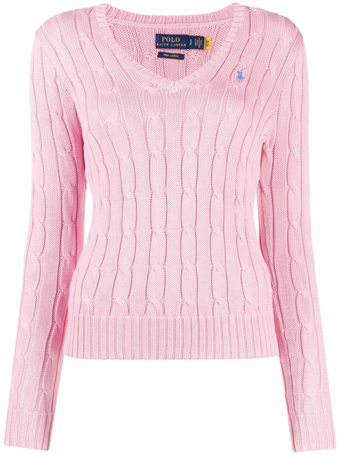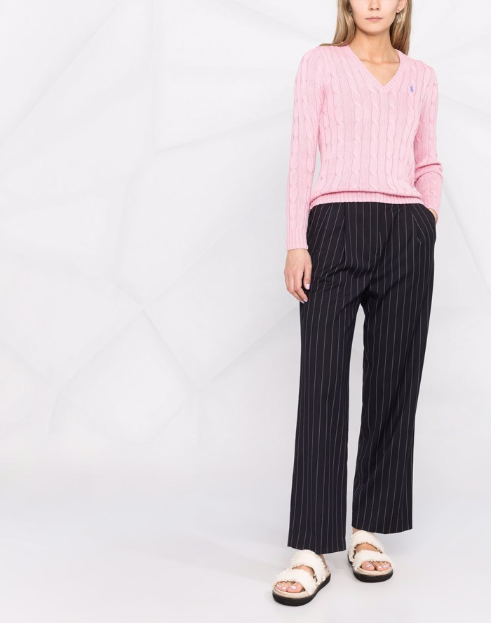 폴로랄프로렌 핑크 케이블 V넥 스웨터 (이혜성 옷)