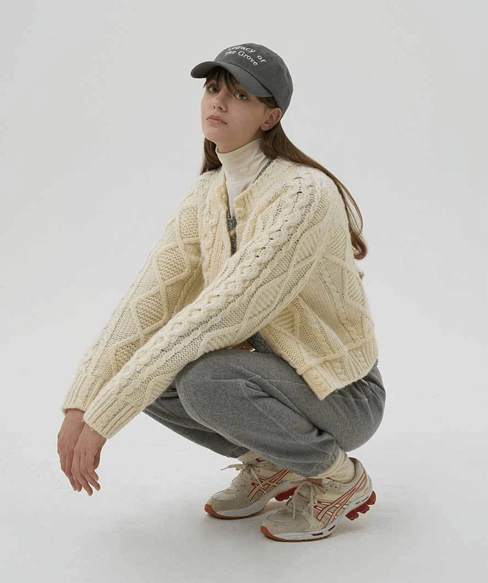 그로브 케이블 니트 가디건 (김나은 옷)