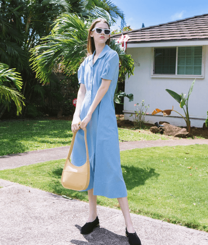 앤유 오아후 라운드 카라 반팔 원피스 (이은지 옷)