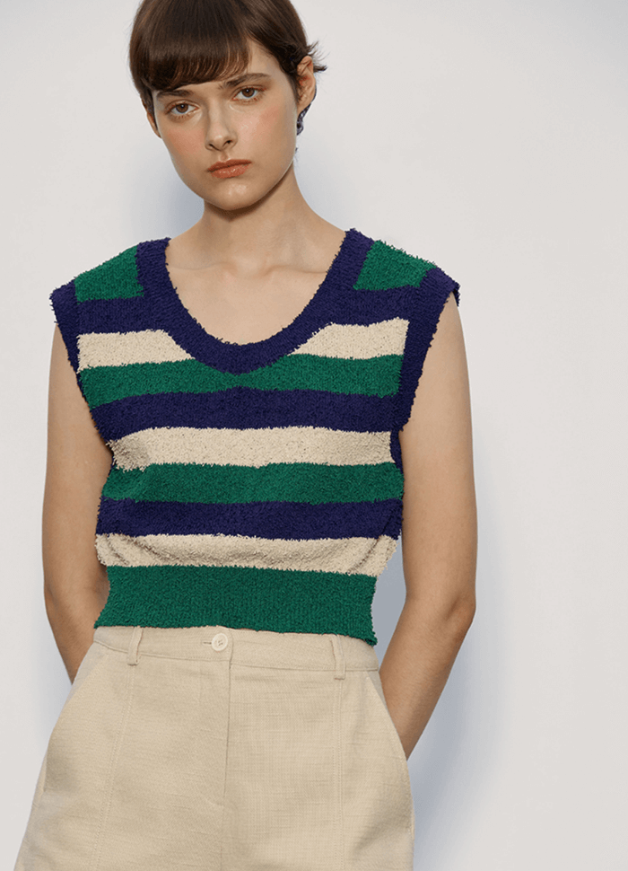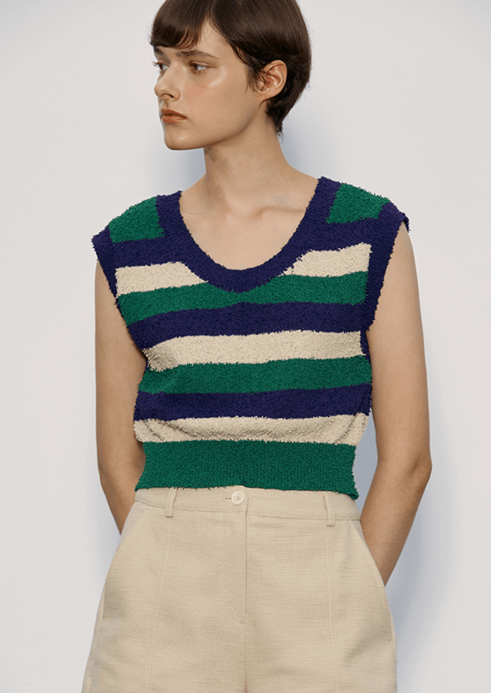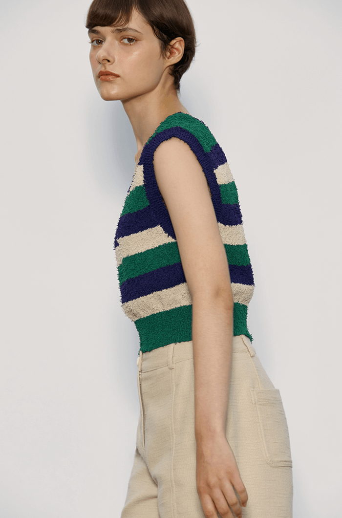 Pig Tail Stripe Knit Vest_Jolly Green-Mix