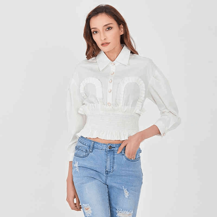 White Tunic Short Elagant Lapel Long Sleeve Blouse