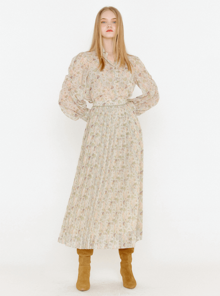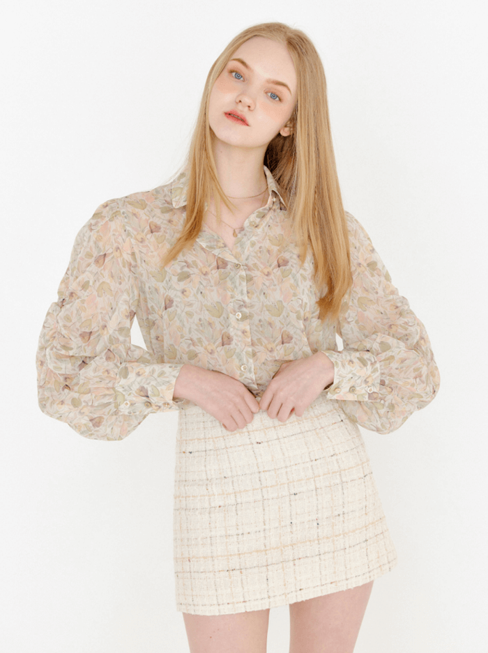 FLOWER PUFF SHIRRING BLOUSE _ OLIVE BEIGE
