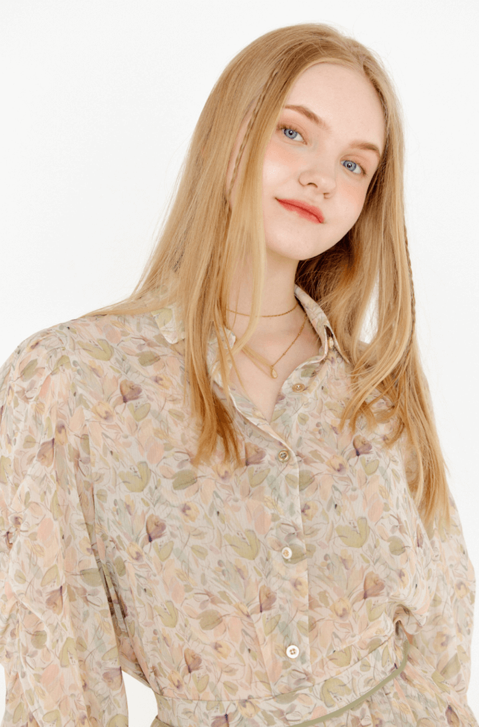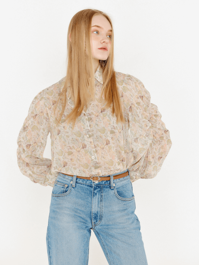 오앨 플라워 퍼프 셔링 블라우스 (심해준 패션)