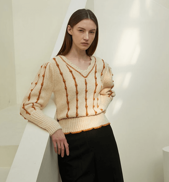 포인트인 브이넥 니트 스웨터