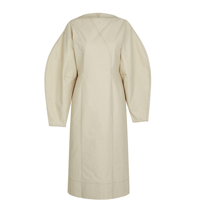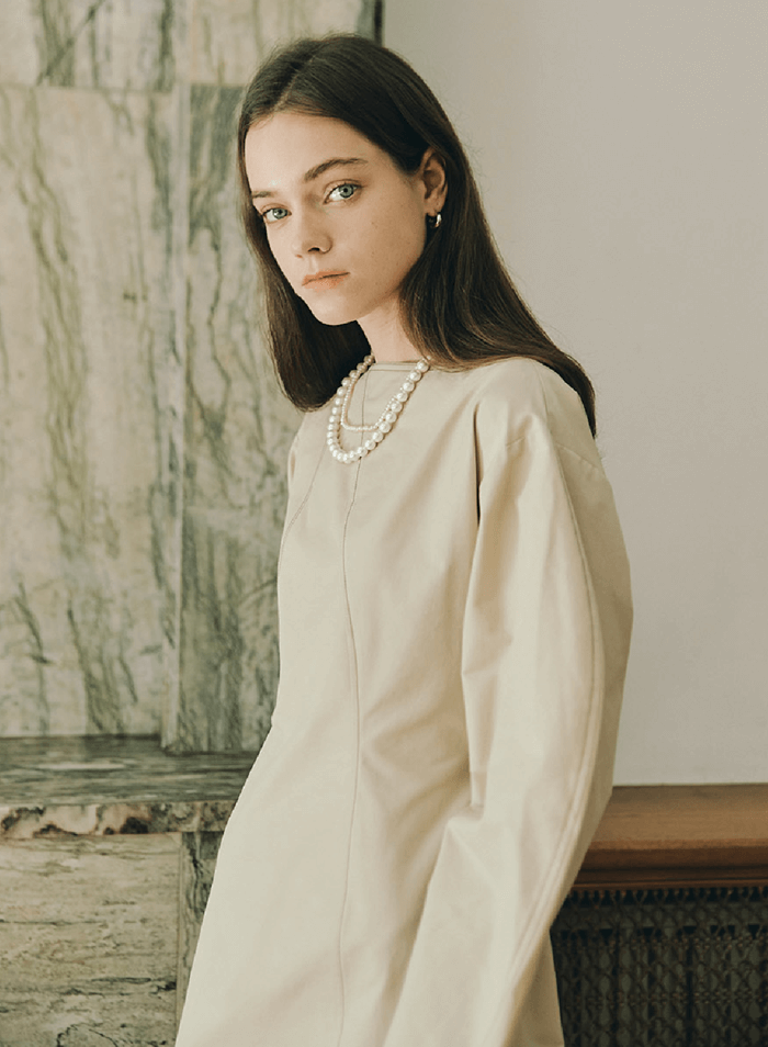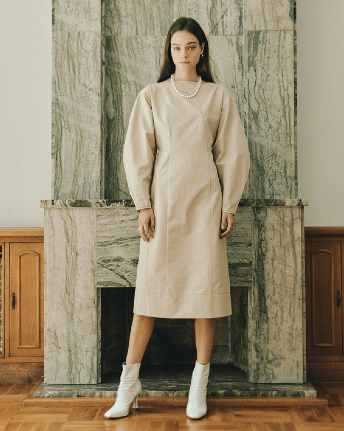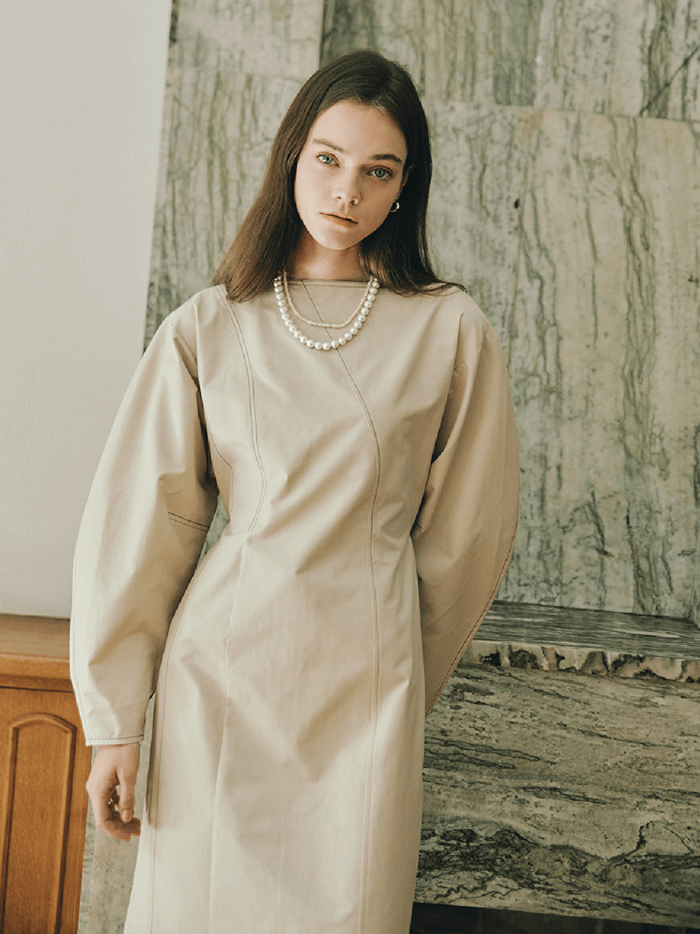 STITCH PUFF MAXI DRES _ BEIGE
