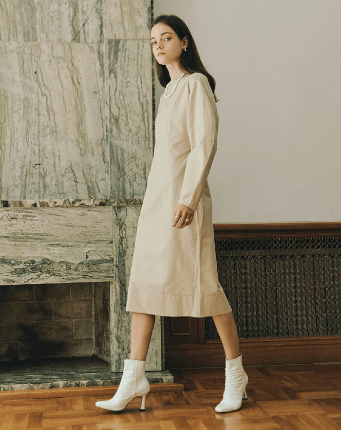 베이지 컬러의 맥시 원피스
