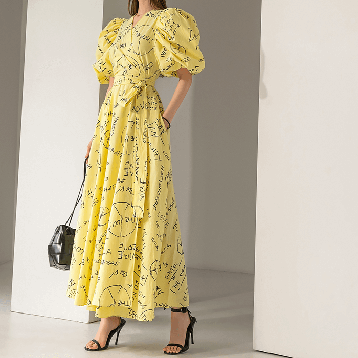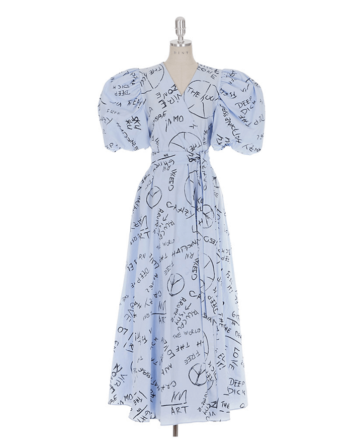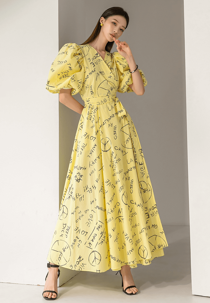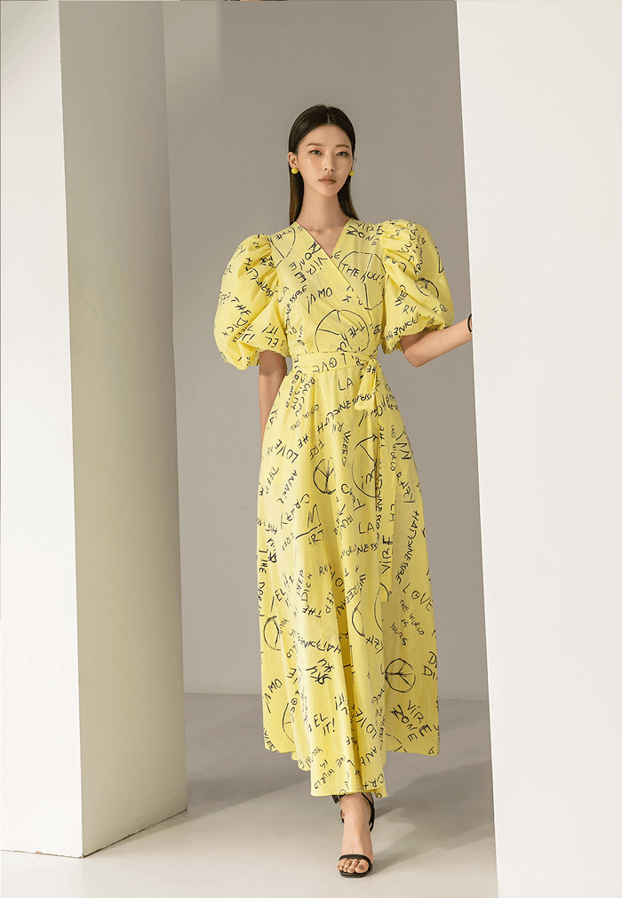 엘리 프린팅 퍼프 랩 플레어 원피스