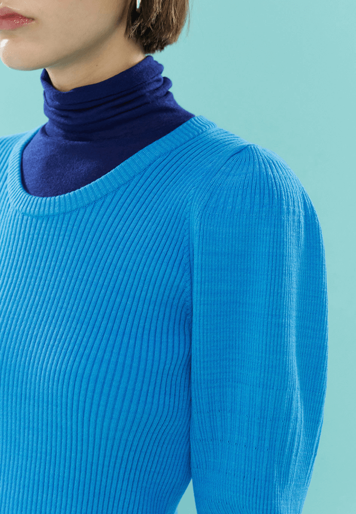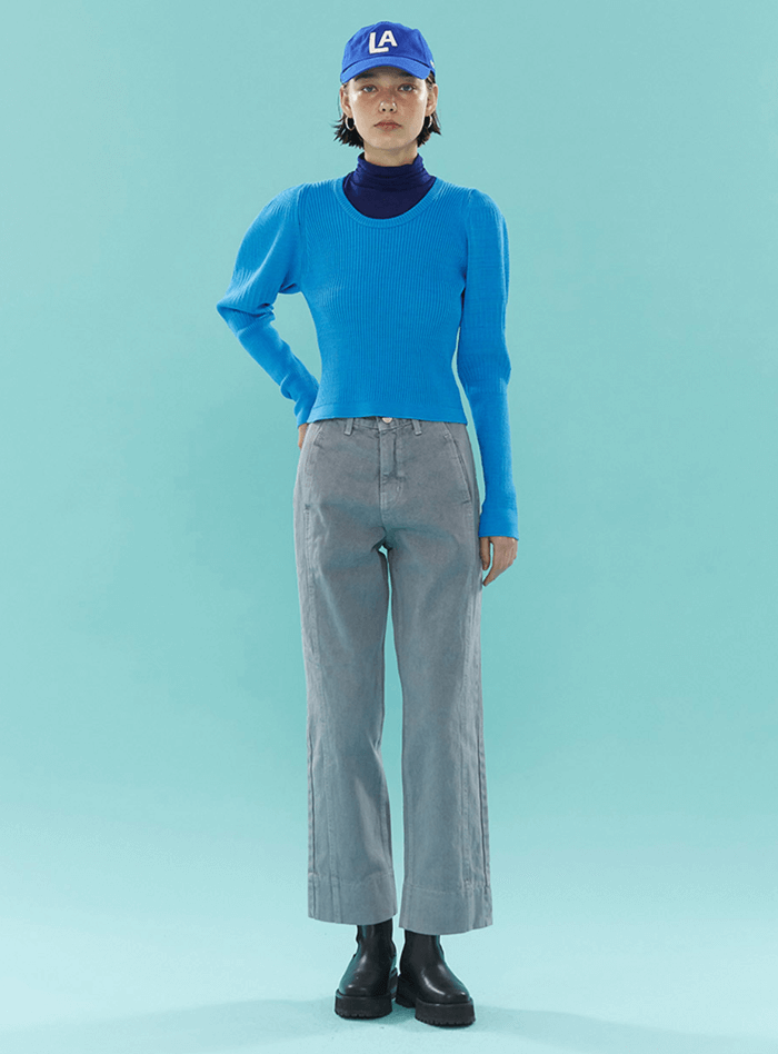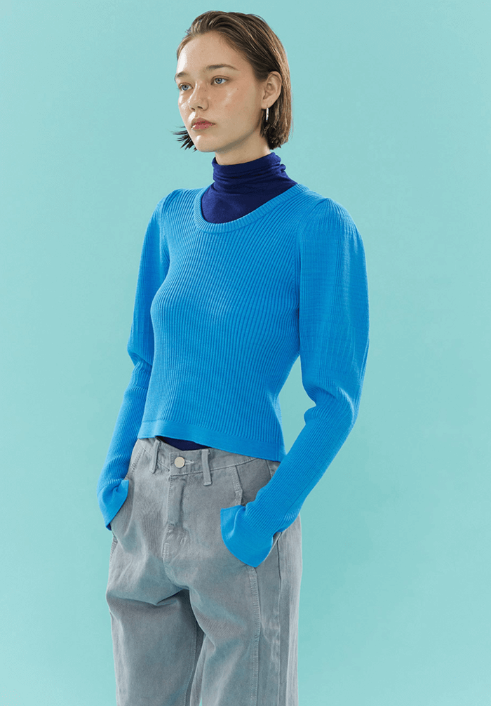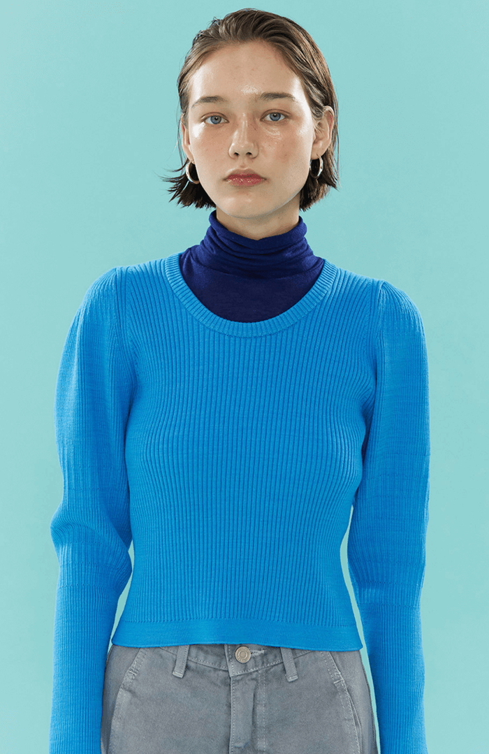 아위 블루 볼륨 소매 니트 스웨터 (박단단 옷)