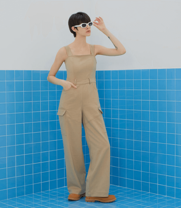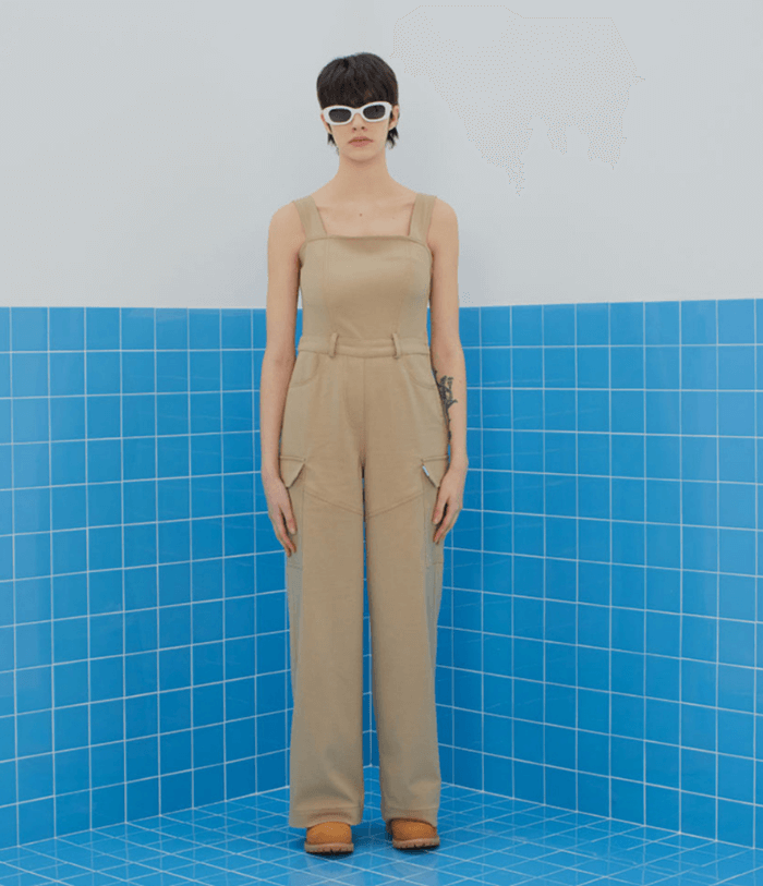 인스턴트펑크 베이지 카고 오버롤 팬츠