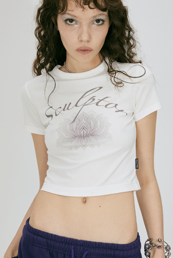스컬프터 연꽃 크롭 반팔티셔츠 (사쿠라 인스타그램 패션)