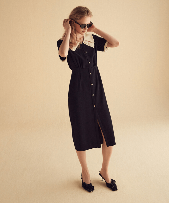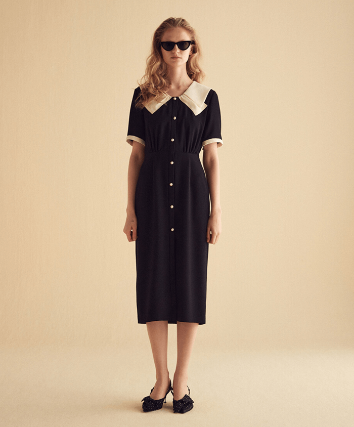 쟈니헤잇재즈 레이어드 카라 반팔 원피스 (박승희 옷)
