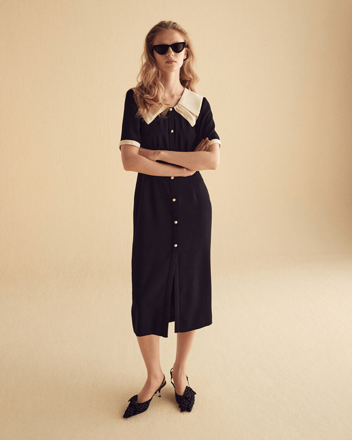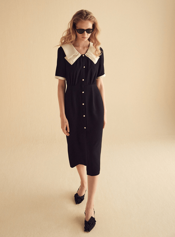 LAYERED COLLAR DERSS - BLACK