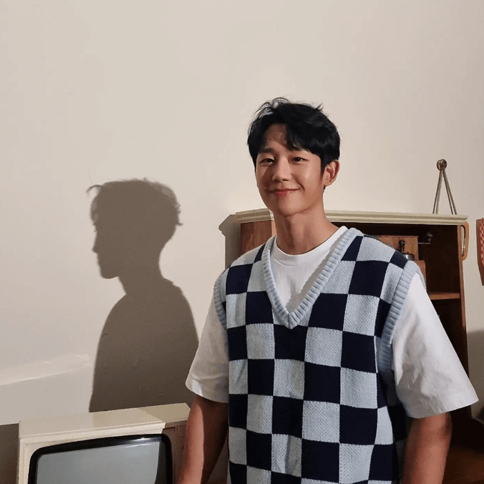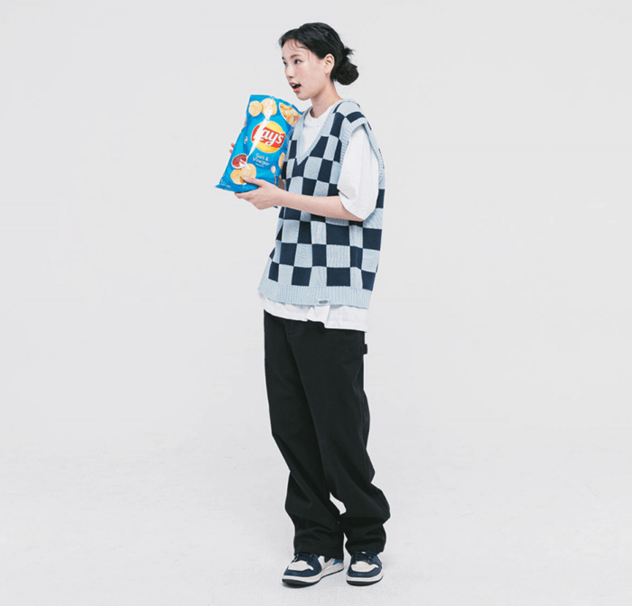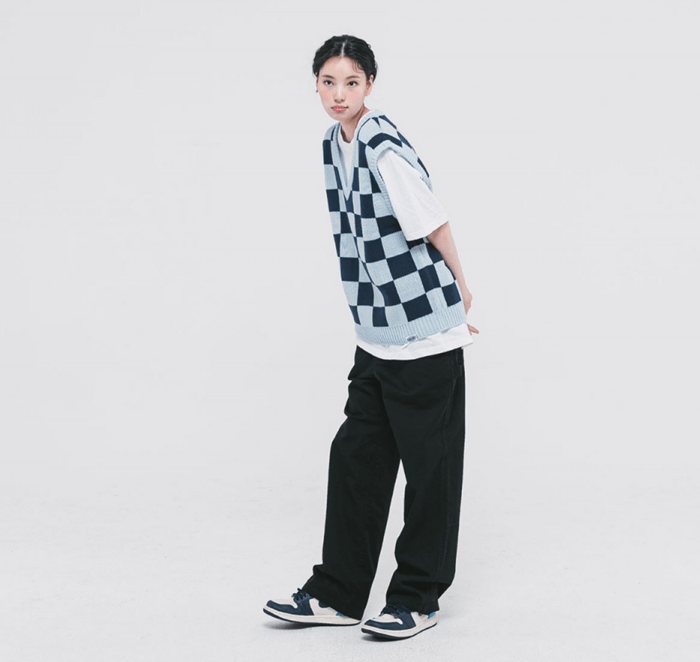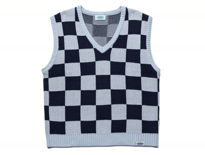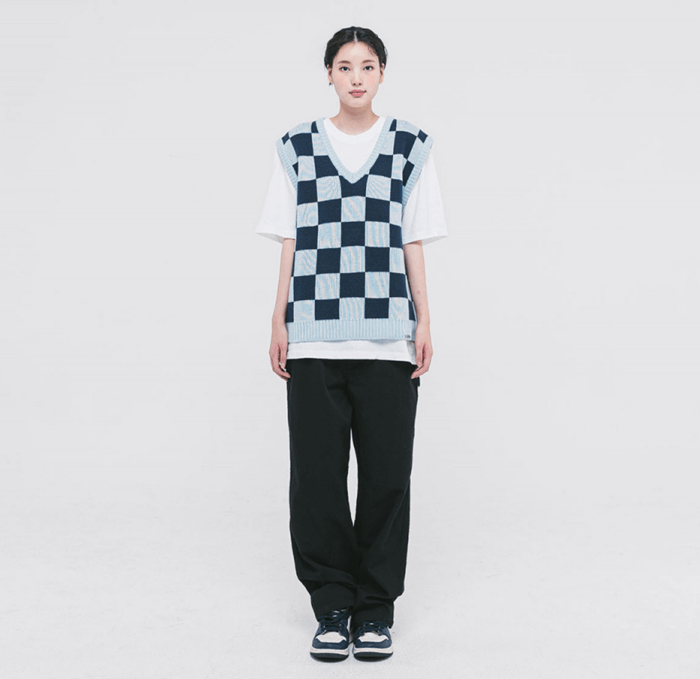 해비즘 하늘색 체크 보드 니트 베스트 (정해인 인스타그램 패션)