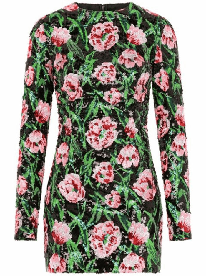 여성 스팽글 튤립 자수 숏 드레스