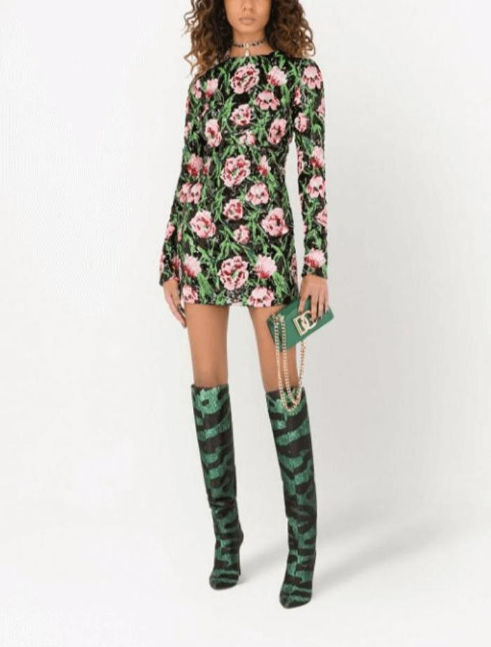 돌체앤가바나 스팽글 튤립 그린 드레스