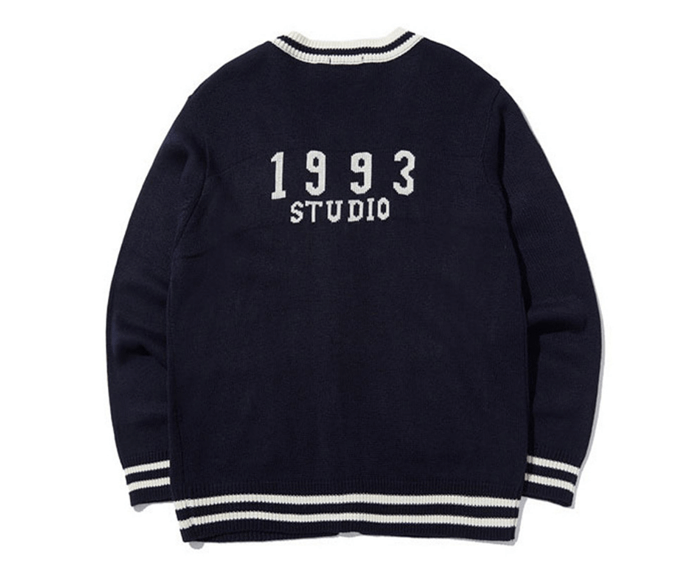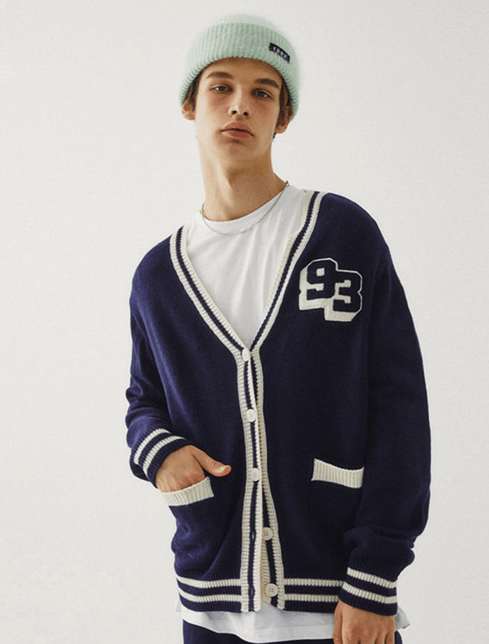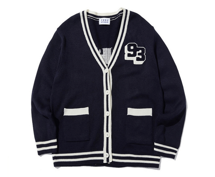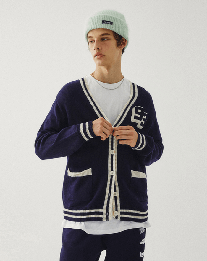 네이비 컬러의 니트 가디건