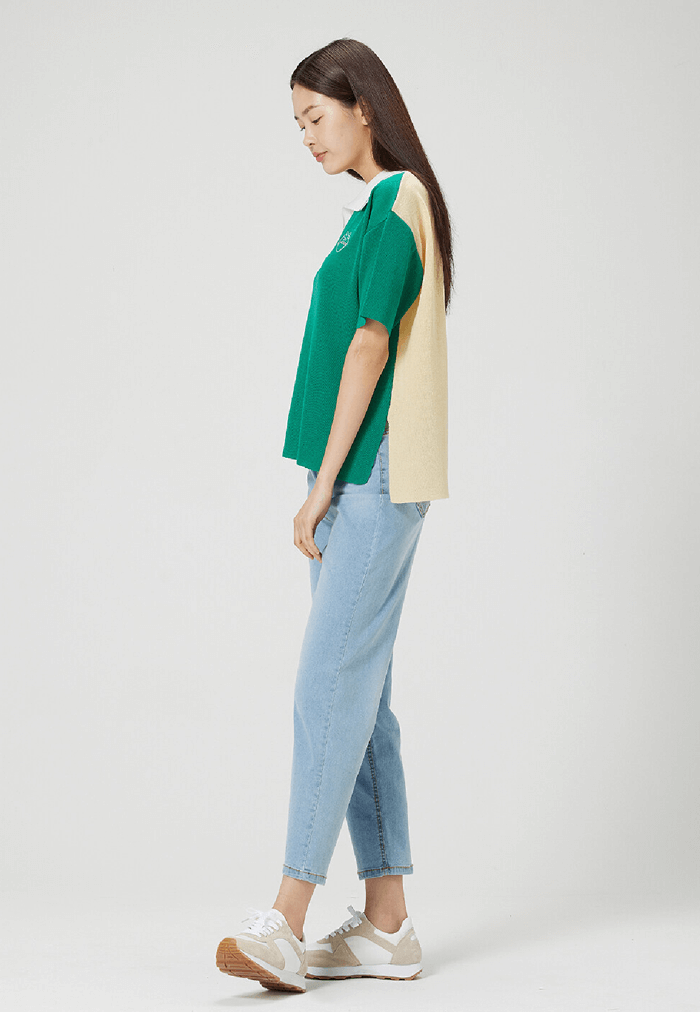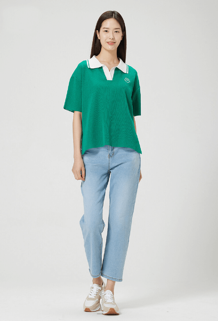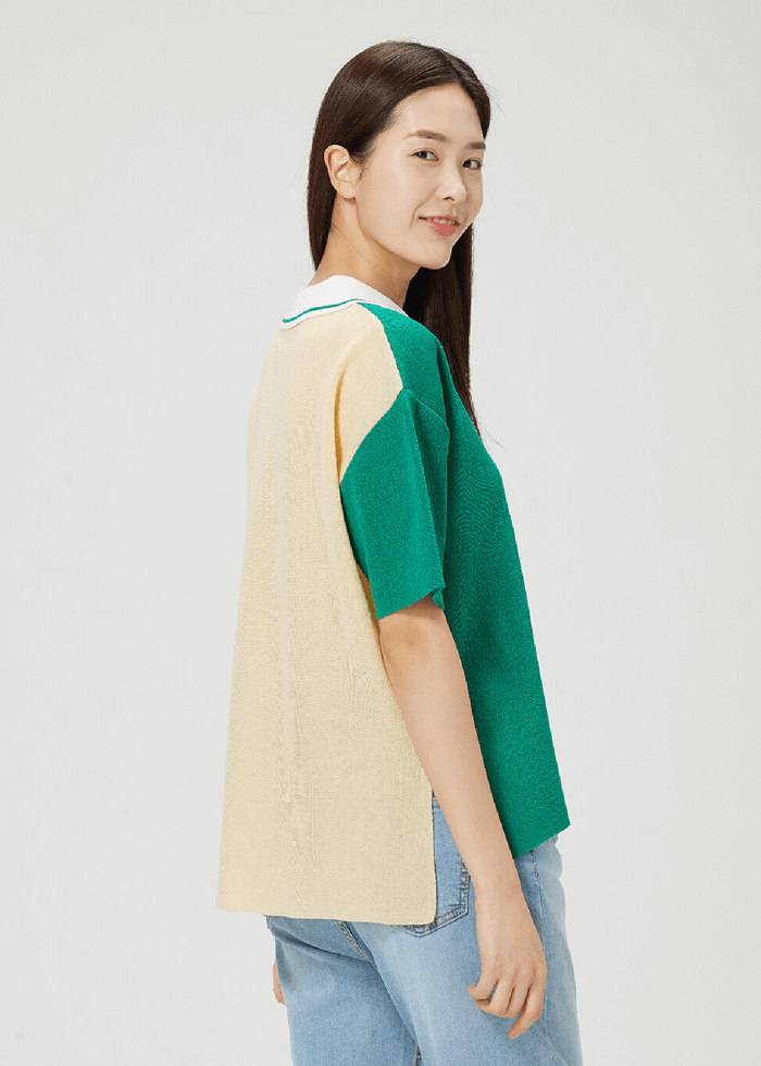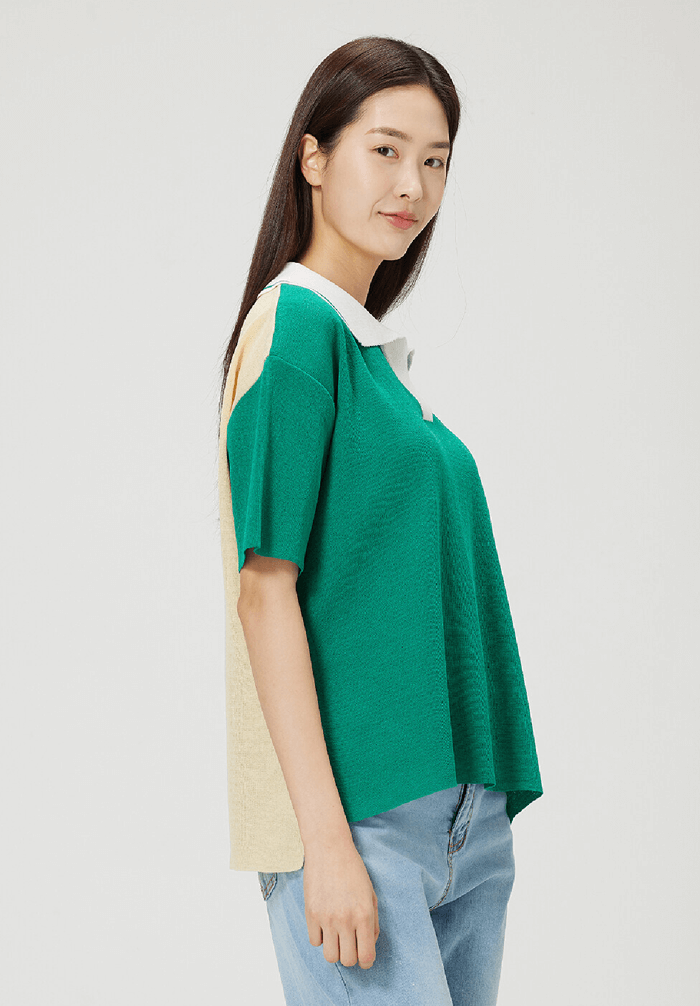 배색 카라 니트(그린)